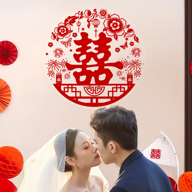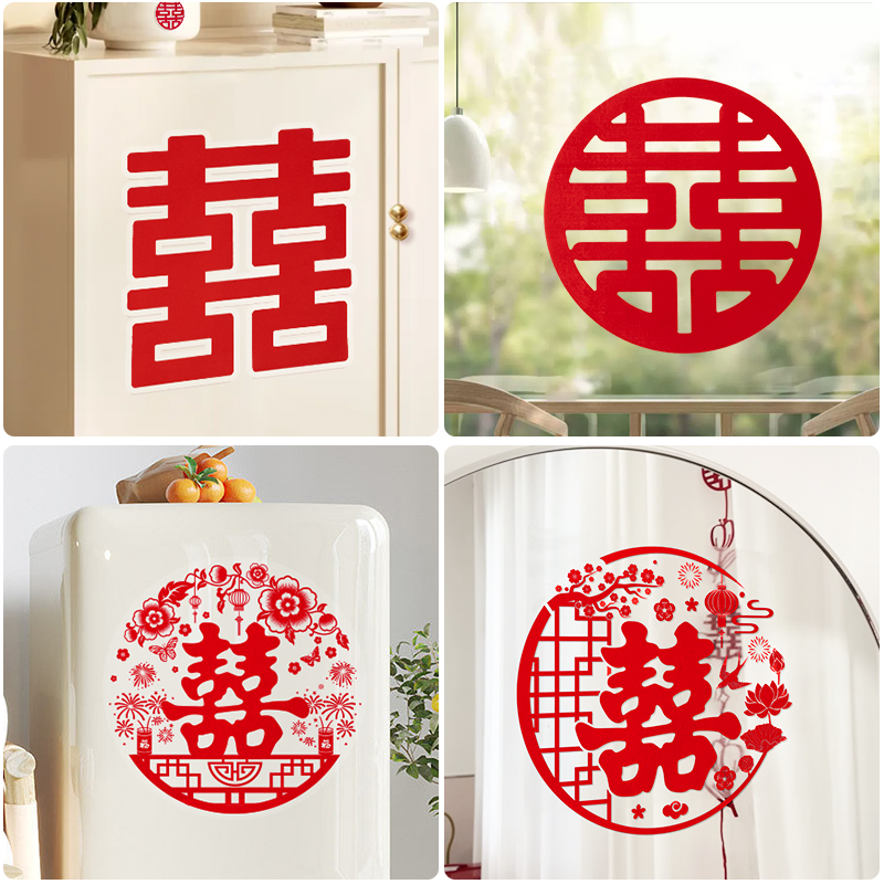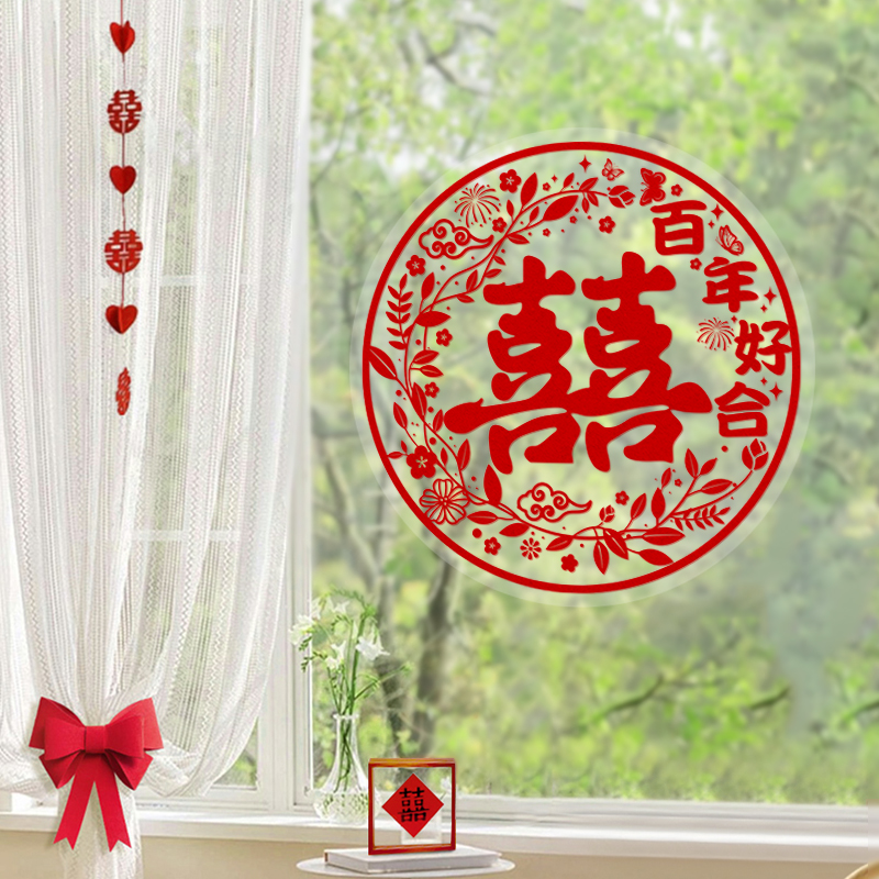 喜字贴结婚专用窗户装饰玻璃窗花结婚双喜贴纸囍字静电贴婚房布置