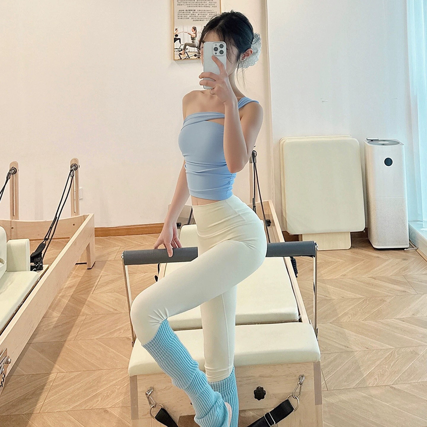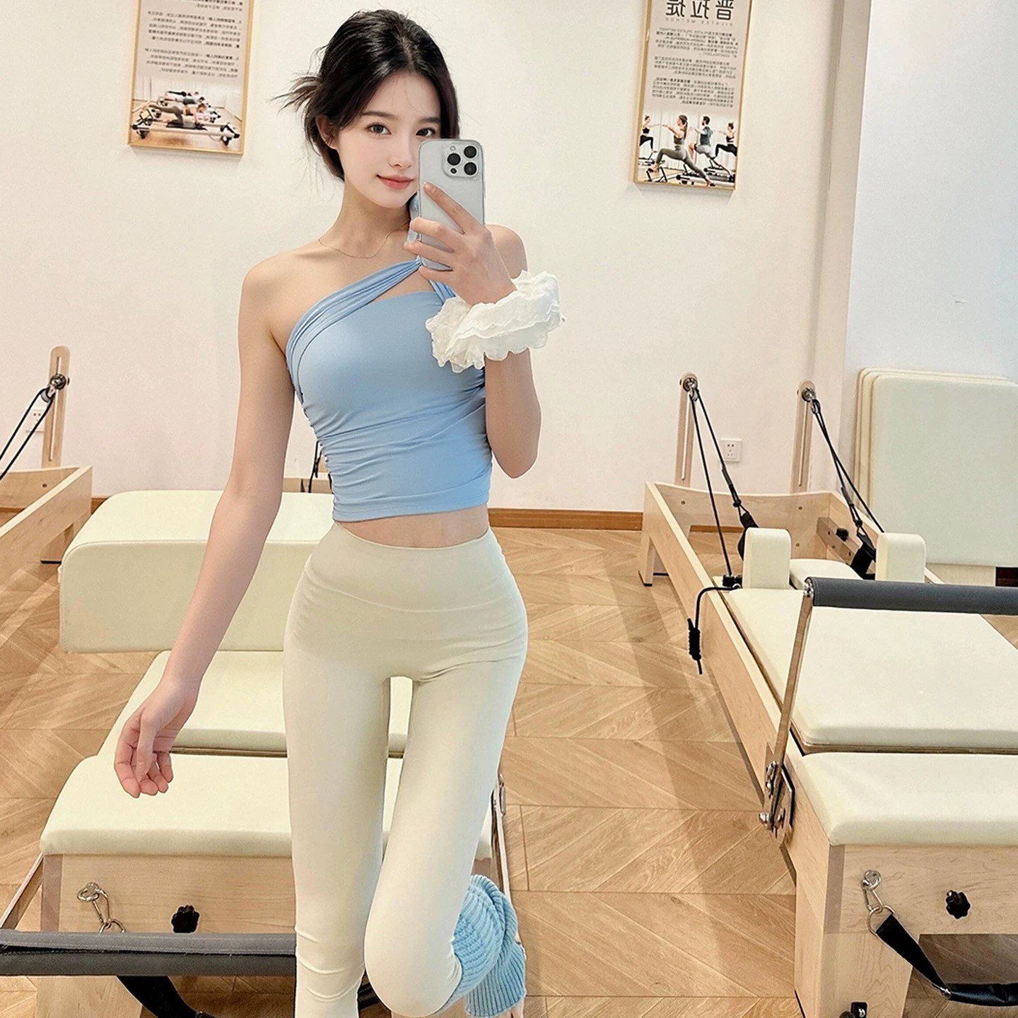 绝美瑜伽服女新款夏季普拉提训练服套装运动背心带胸垫健身服上衣