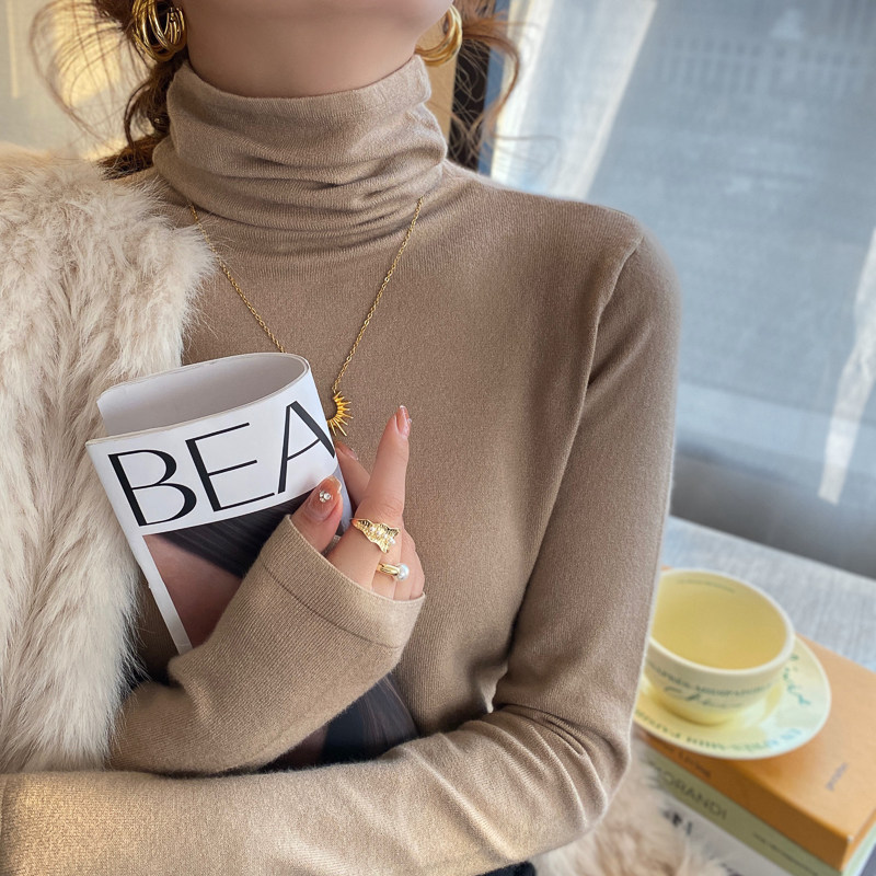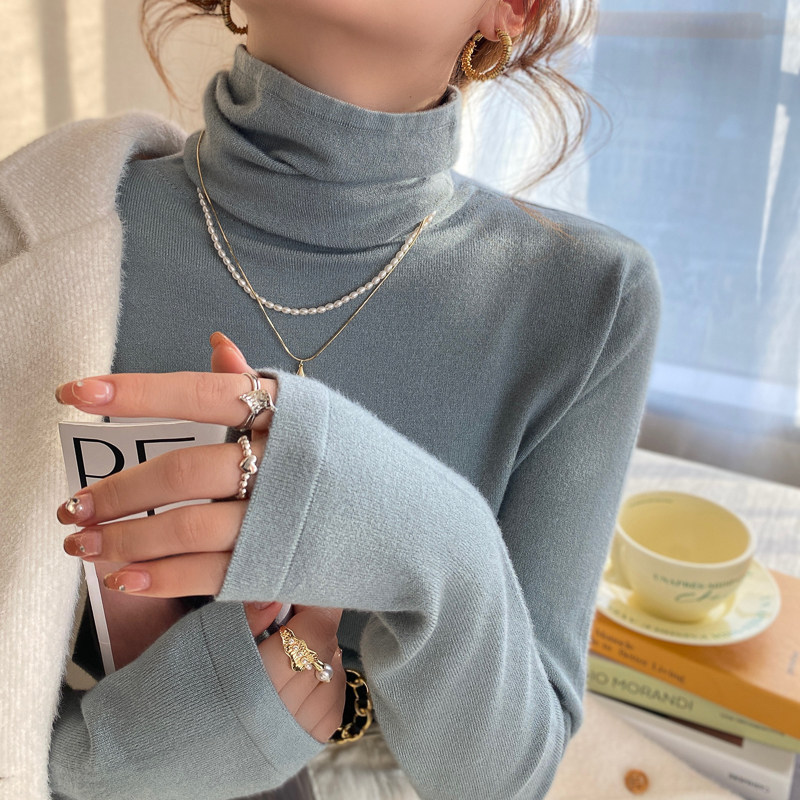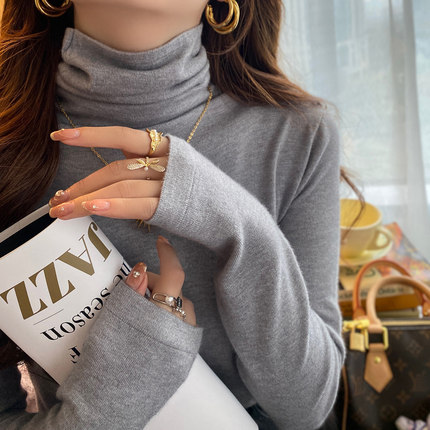 高领打底衫女秋冬2025新款高级感毛衣内搭堆堆领针织长袖灰色上衣