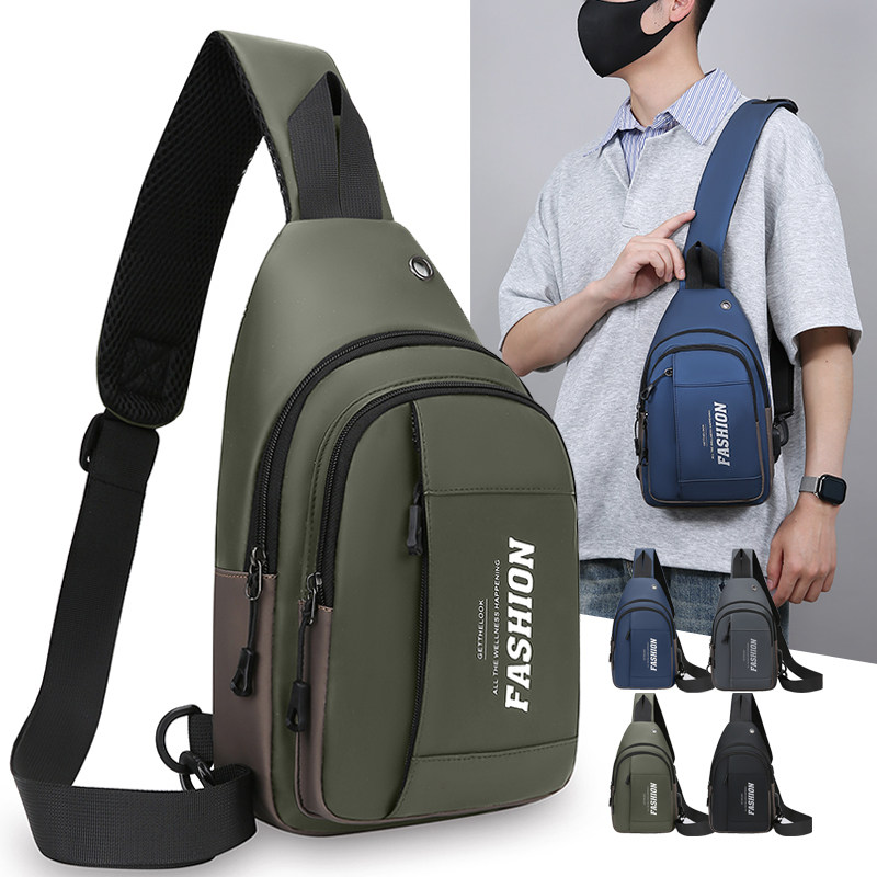 新款男士斜挎包时尚休闲运动胸包多层单肩旅游简约小背包轻便百搭
