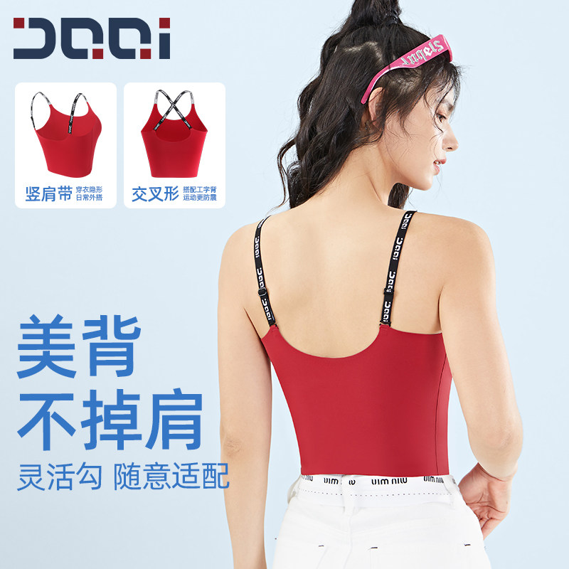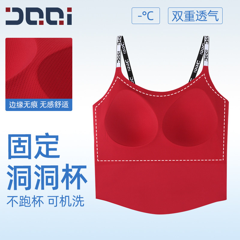 的确奇无痕裸感运动内衣女一体杯外穿果冻吊带背心瑜伽健身文胸夏