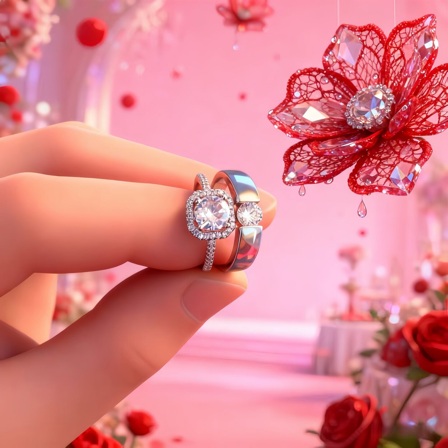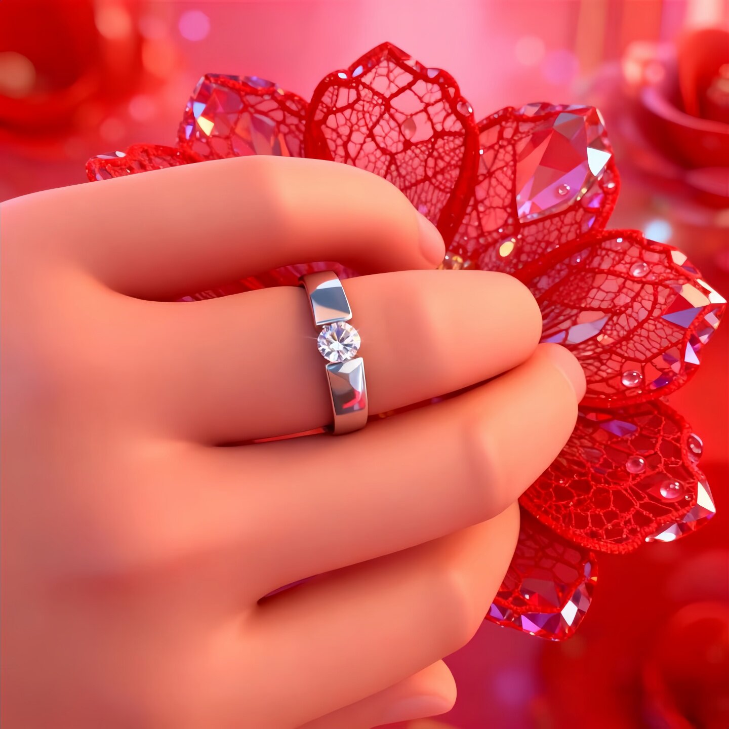 轻奢高级假钻戒婚礼戒指仿真一对求婚指环结婚对戒情侣款活口可调