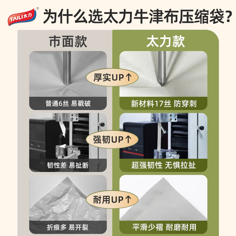 太力加厚牛津布艺真空压缩袋衣服被子收纳袋耐用可重复使用真空袋