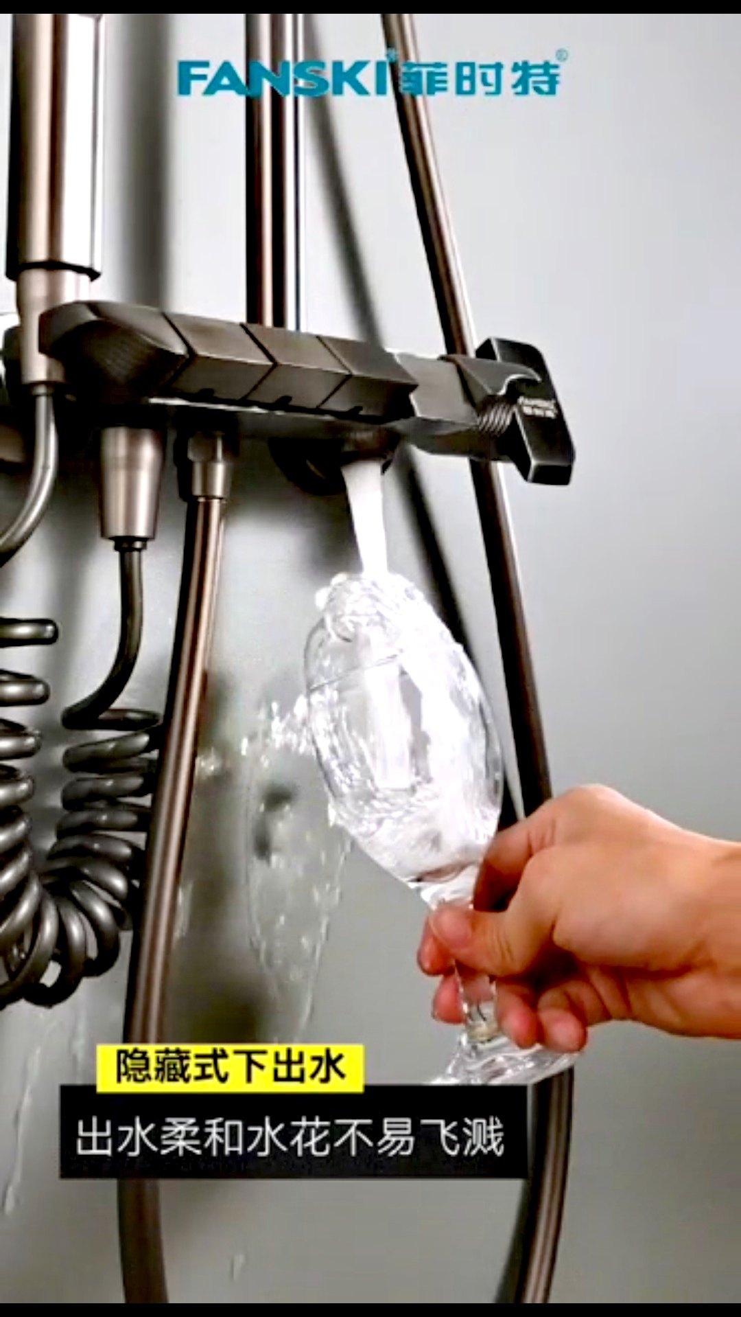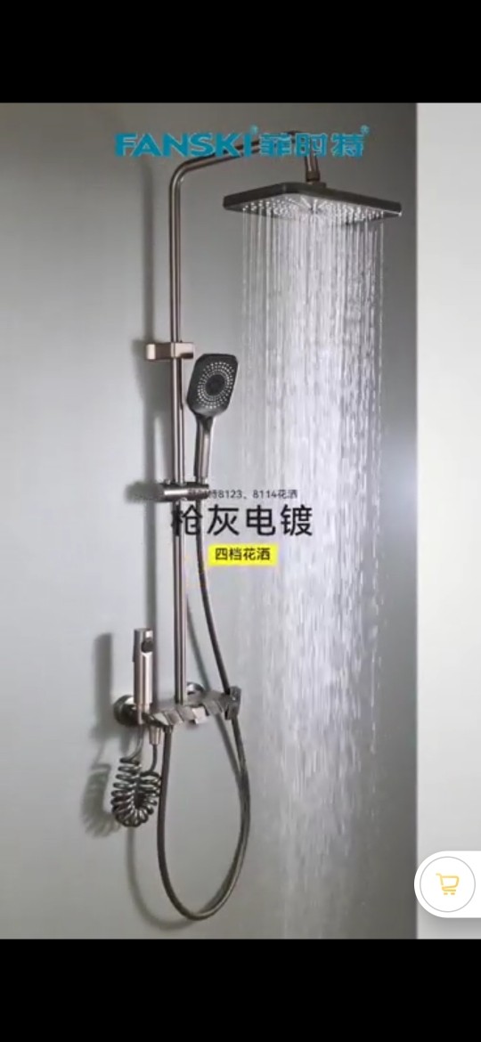 FANSKI菲时特钢琴款枪灰电镀式增压手持花洒带喷枪浴室淋雨套装