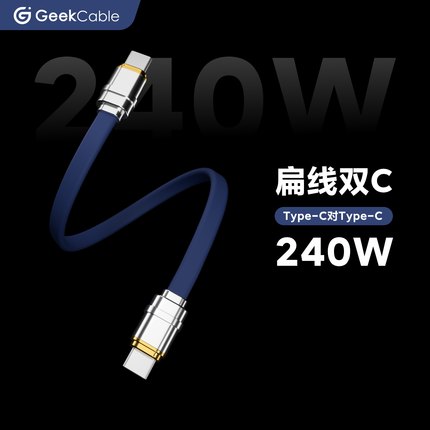 GeekCable极鲨适用适用于苹果三星手机笔记本电脑PD3.1快充充电数据线面条扁线硅胶240W