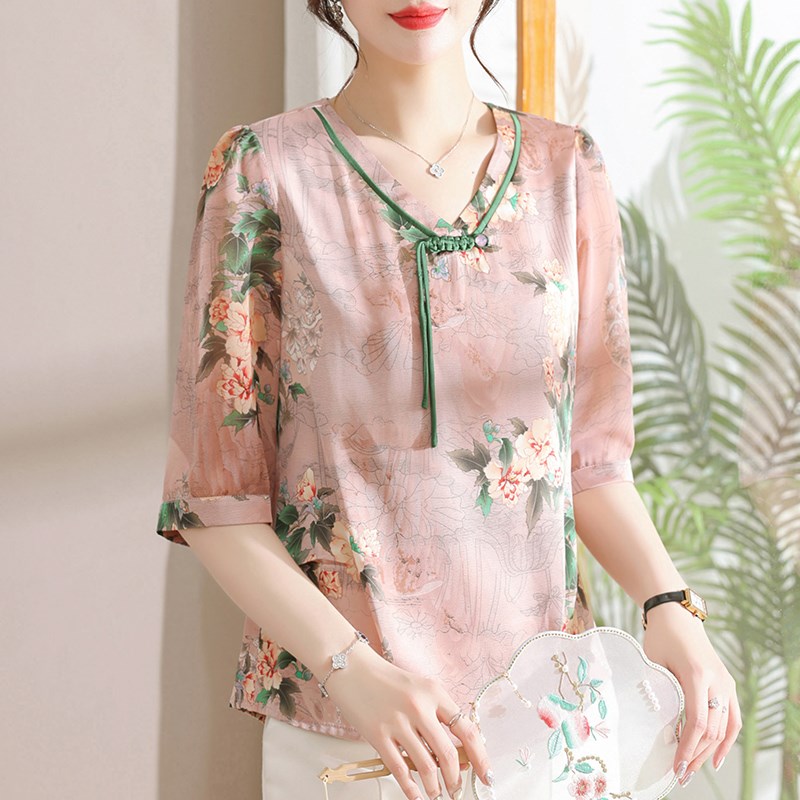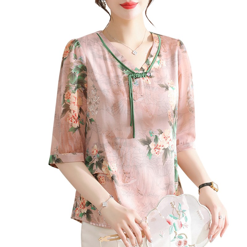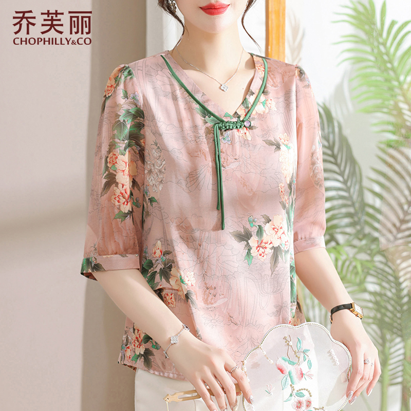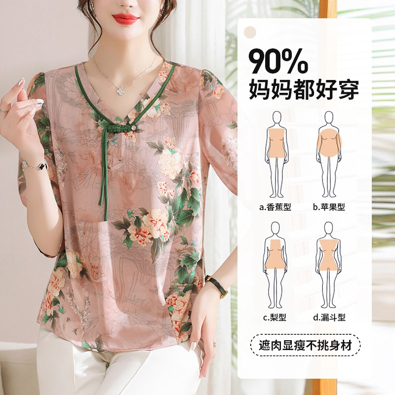 妈妈春装新中式国风雪纺小衫套装2024新款中老年女士夏季洋气上衣