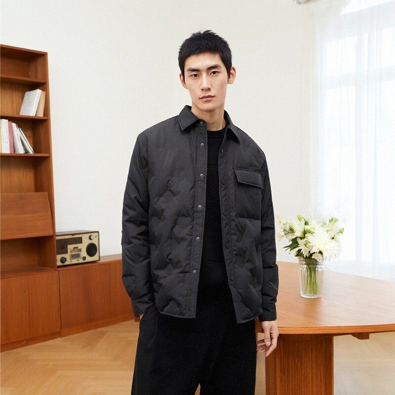 太平鸟男装轻薄羽绒服秋冬新款衬衫式保暖翻领保暖外套25年新批次