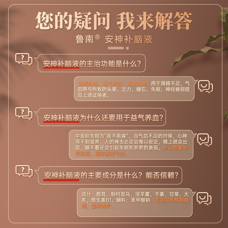 【鲁南】安神补脑液10ml*10支/盒官方正品治疗失眠多梦神经衰弱助睡中药调理口服液