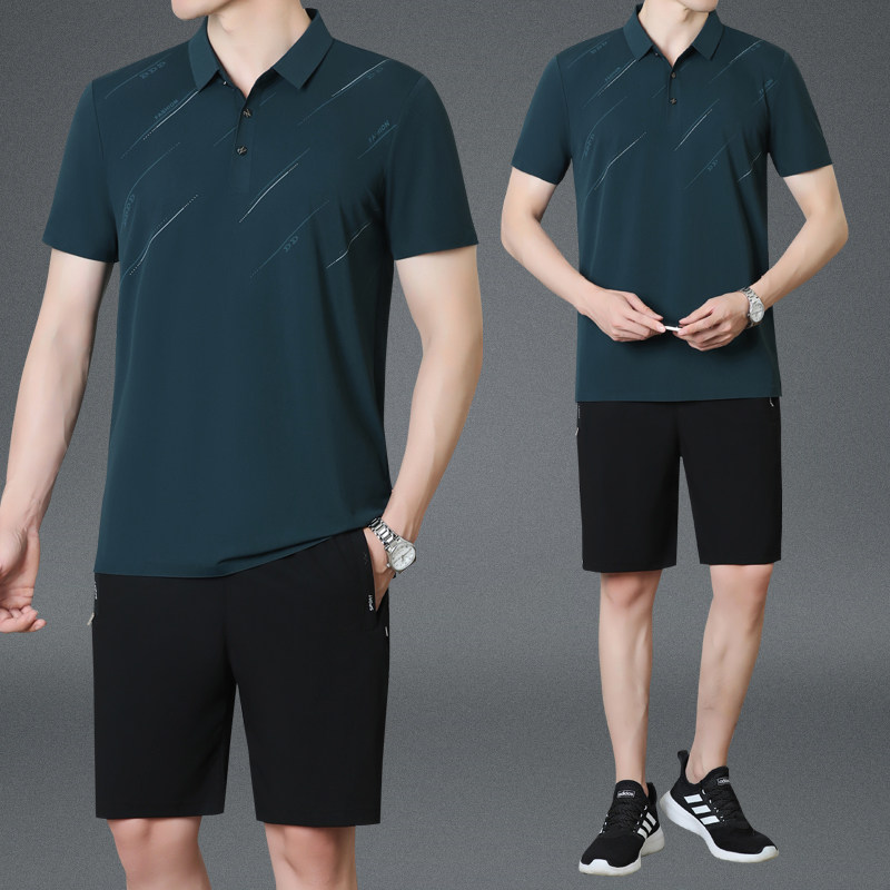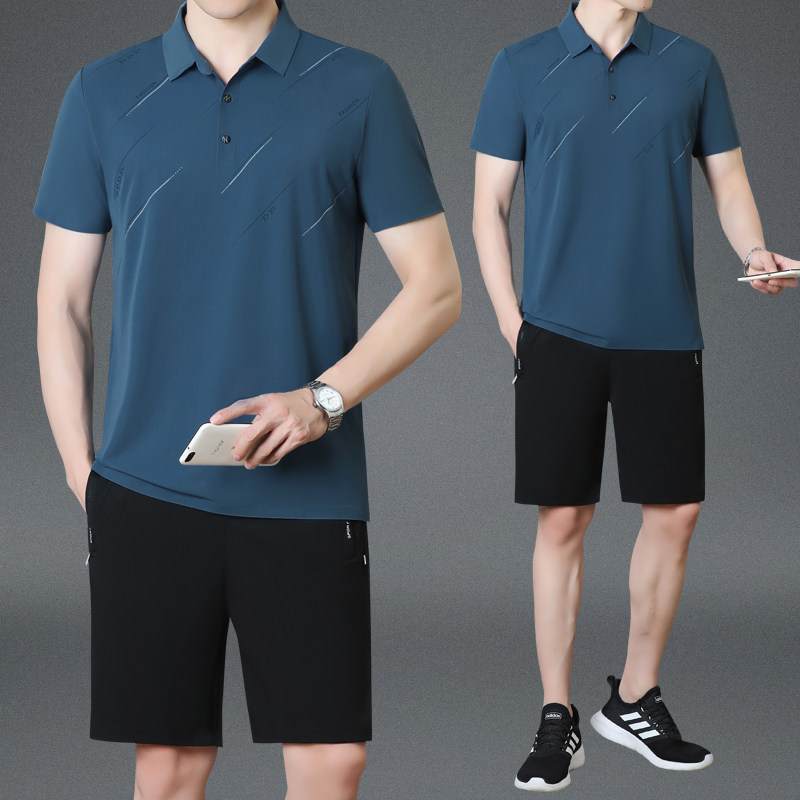 爸爸夏装套装冰丝短袖t恤中老年运动短裤男士父亲节夏季速干衣服