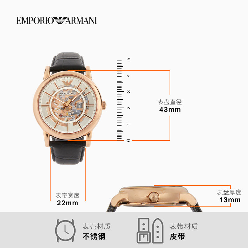 【情人节礼物】EMPORIO ARMANI/阿玛尼秋冬男士镂空机械手表腕表