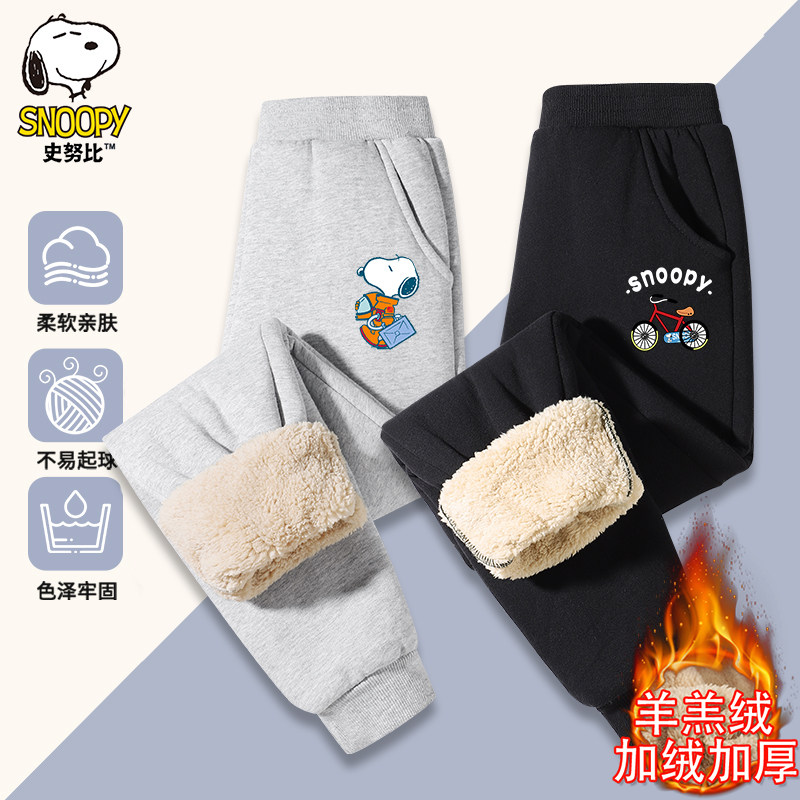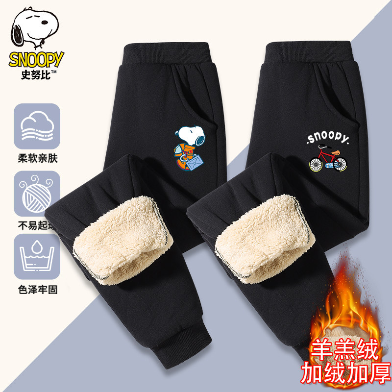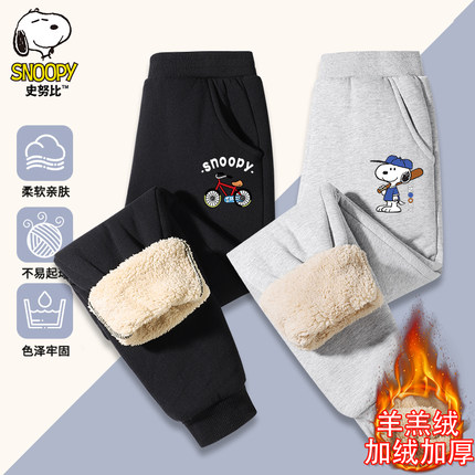 史努比男童秋冬加厚帅气保暖羊羔绒卫裤2025新款校园一条过冬裤潮