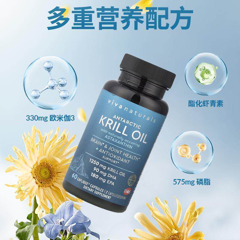 Viva Naturals南极磷虾油含虾青素大脑和关节健康成人中老年护脑