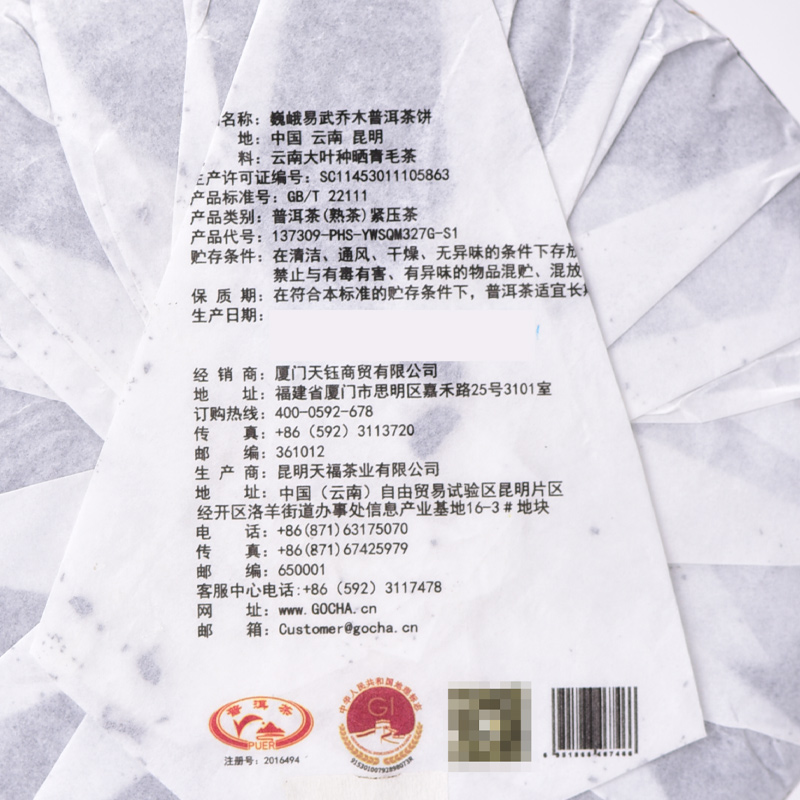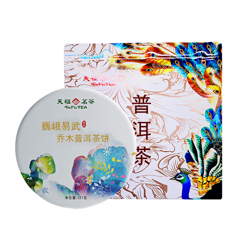 买1发2 天福茗茶巍峨易武山普洱茶饼 熟茶饼熟普云南大叶种327g