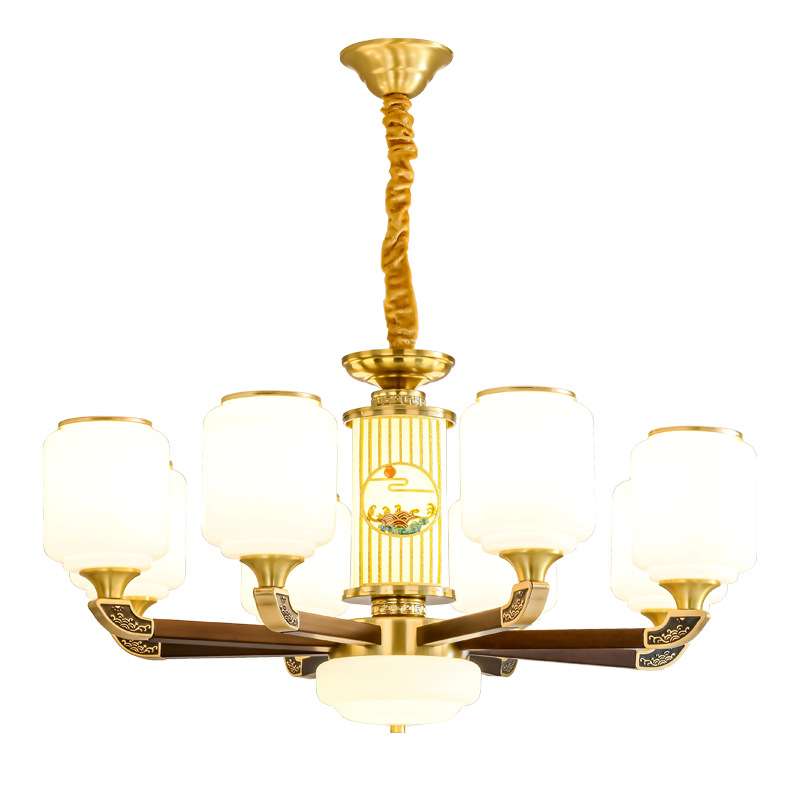 新中式全铜吊灯实木客厅灯大厅别墅复式楼大灯书房餐厅灯卧室灯具