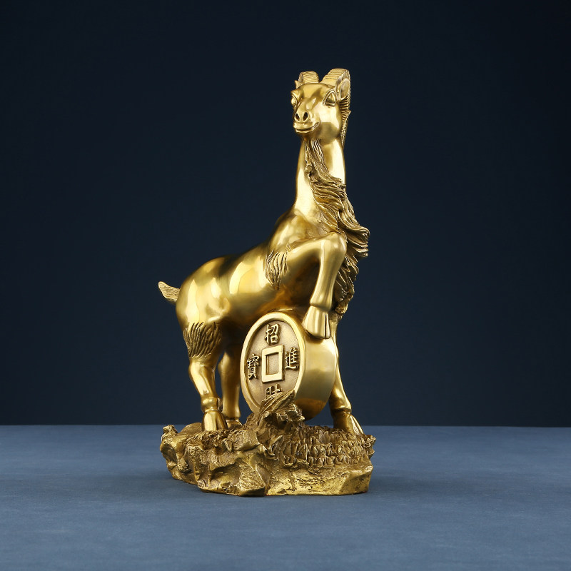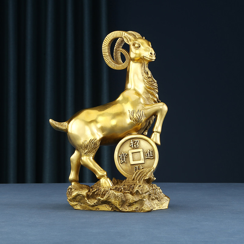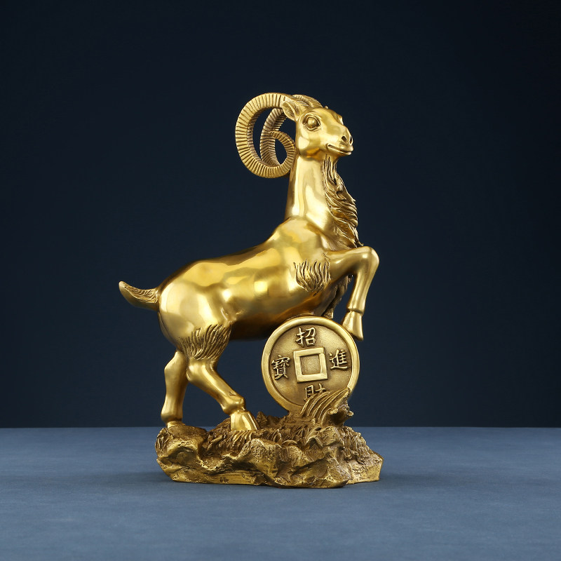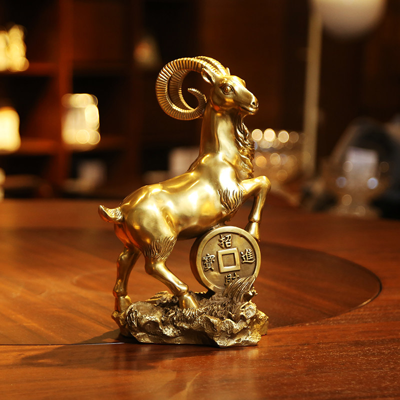 铜欣祥黄铜羊摆件金钱羊铜工艺品居家饰品桌面摆设礼品属羊生肖羊