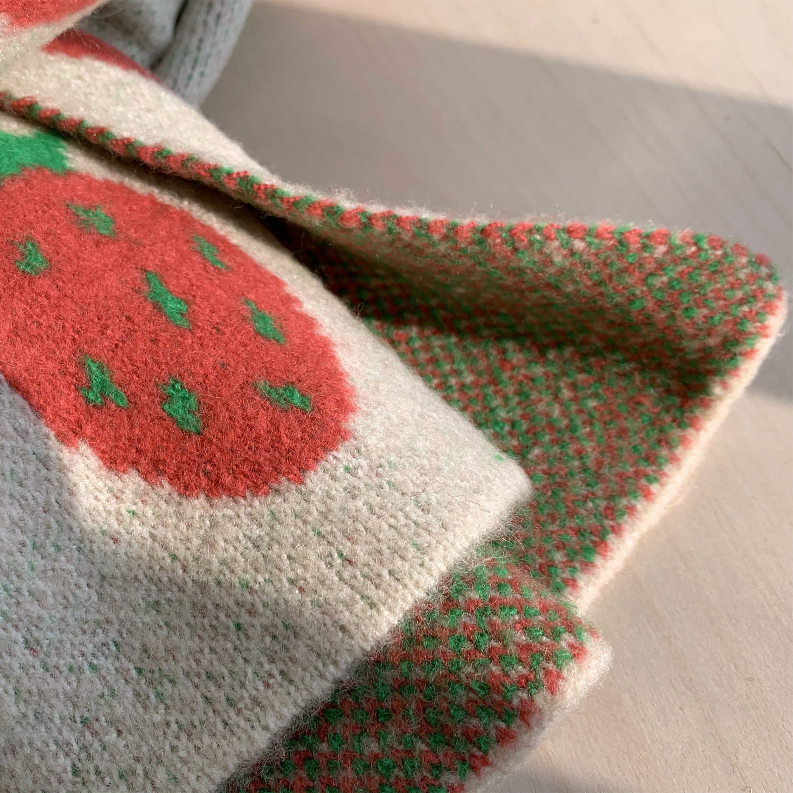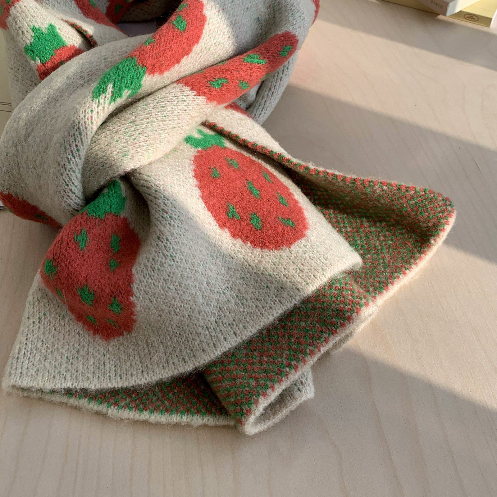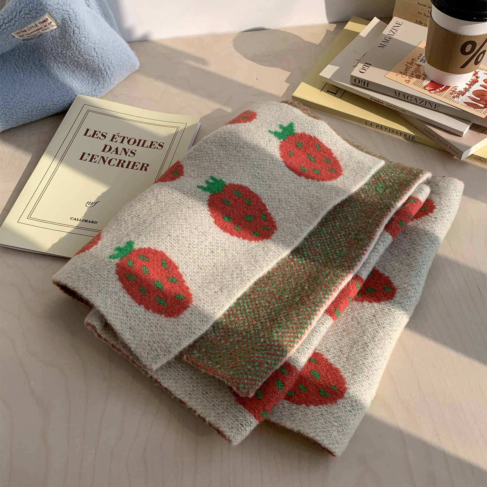甜甜的草莓图案 软糯的仿羊绒冬季保暖韩系毛线针织女围巾