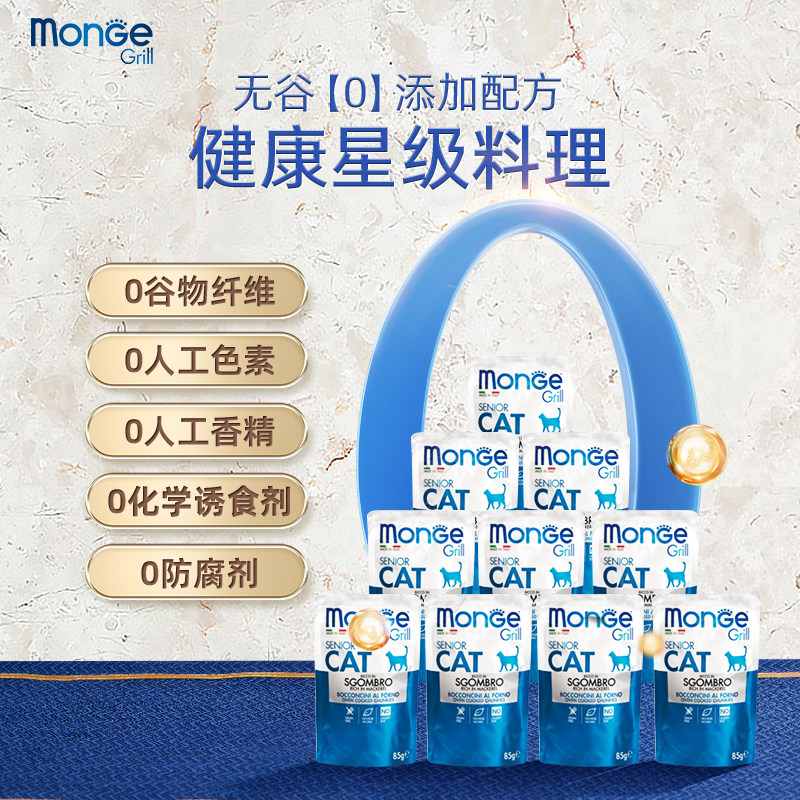 monge梦吉老猫专用马鲛鱼主食餐包 乳蛋白易消化鲜肉湿猫粮85g*12
