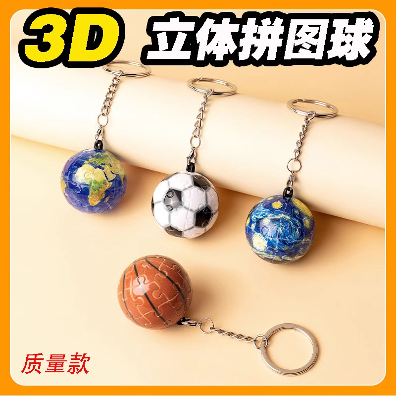 3d立体拼图玩具地球挂件足球模型益智挂饰篮球钥匙扣球形个球拼装
