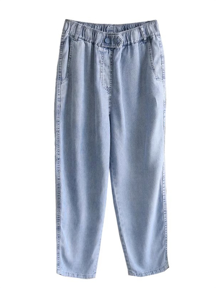 梨形身材天丝牛仔裤女夏薄款遮肉