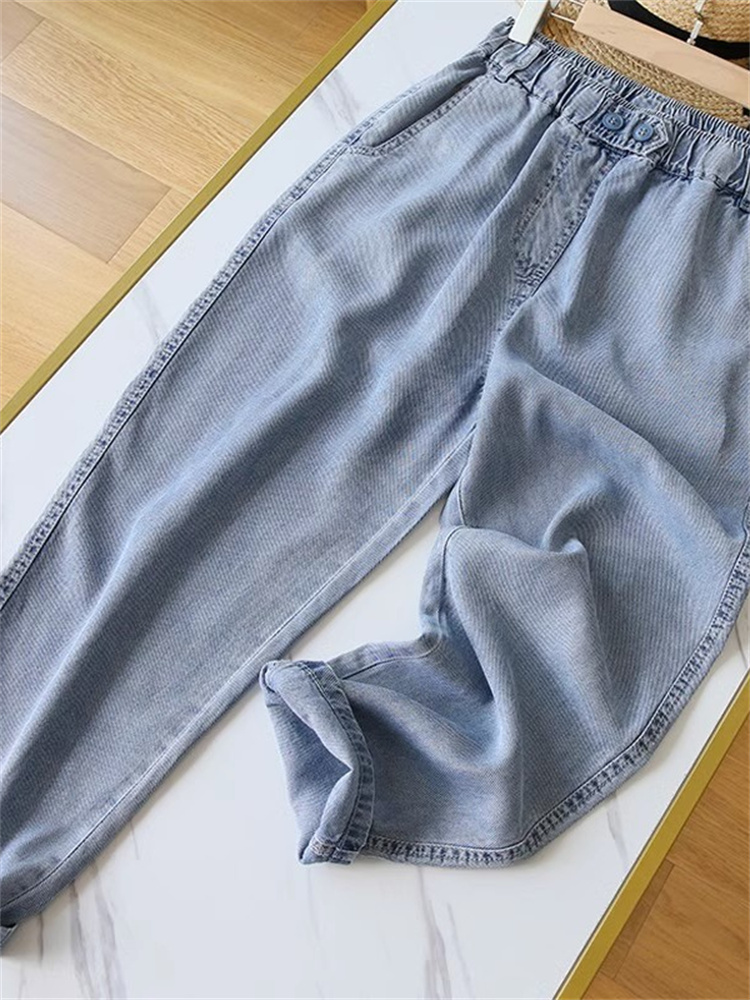 梨形身材天丝牛仔裤女夏薄款遮肉显瘦哈伦裤时尚设计感九分萝卜裤