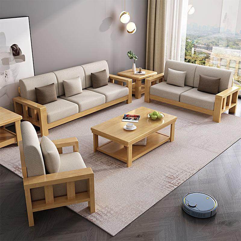 中式实木沙发组合出租房沙发现代简约小户型客厅贵妃转角布艺沙发