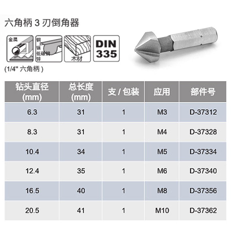 Makita牧田3刃倒角器六角柄沉孔钻刀金属木材螺丝头下沉合金锪钻
