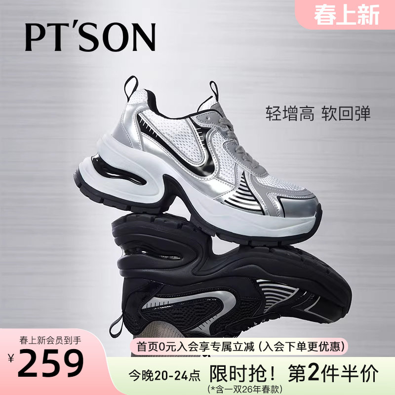 百田森商场同款时尚银色老爹鞋厚底休闲鞋新款增高女士加绒运动鞋