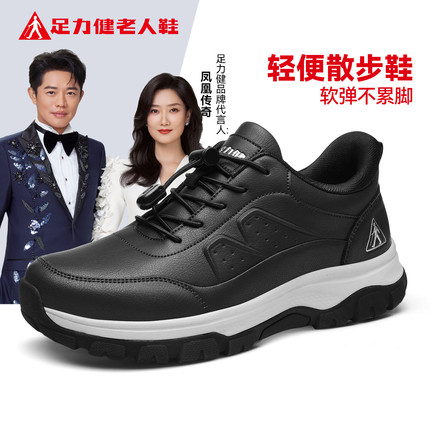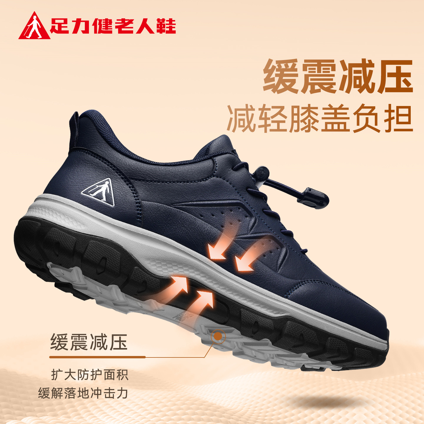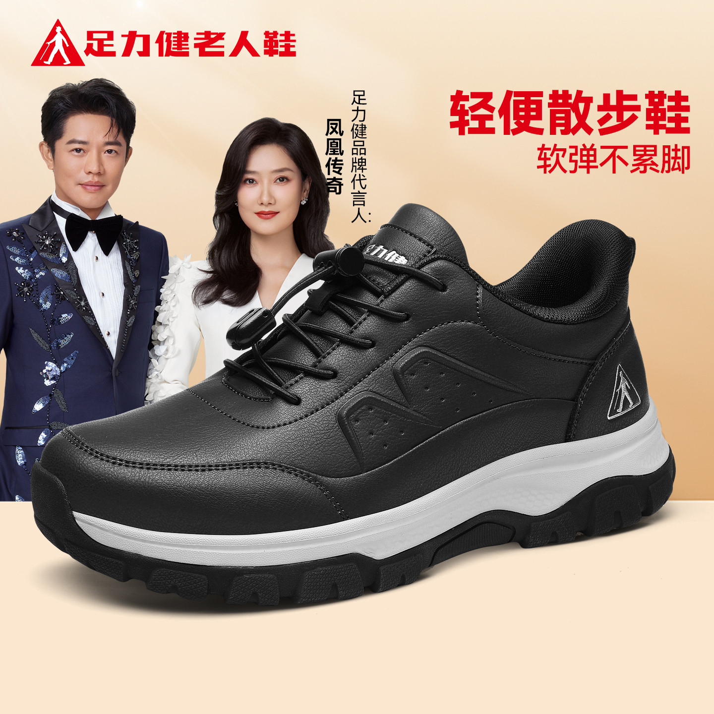 足力健老人鞋官方旗舰店正品中年爸爸春季款皮面健步软底运动男鞋
