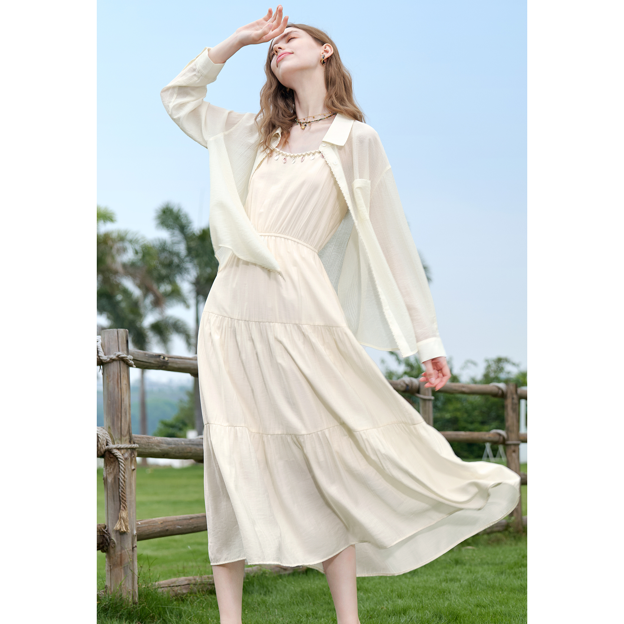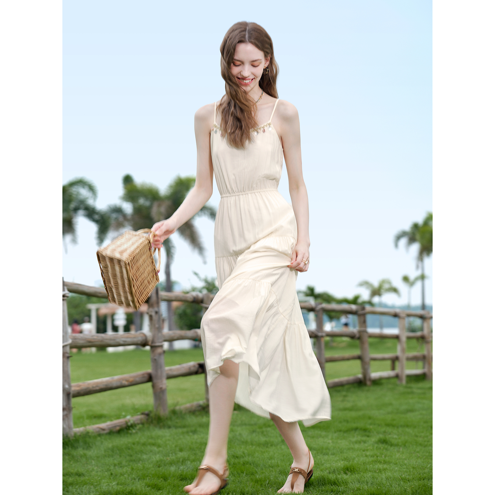 betu百图波西米亚吊带连衣裙领口外贴吊坠花边旅行度假沙滩裙