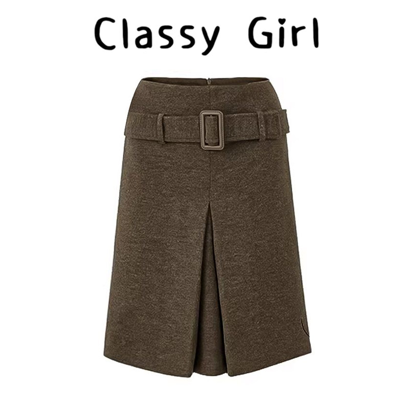 秋冬重磅气质显瘦A字腰带半身裙