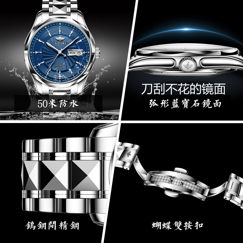 瑞士认证正品牌手表男士机械表全自动双日历进口芯钨钢带防水十大
