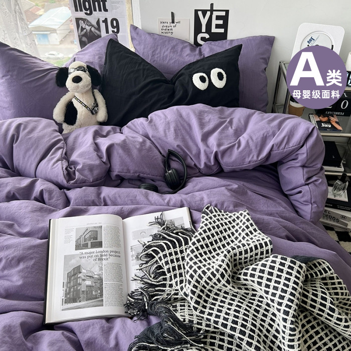 ins纯色全棉纯棉四件套床单被罩学生宿舍三4件套被套双人床上用品