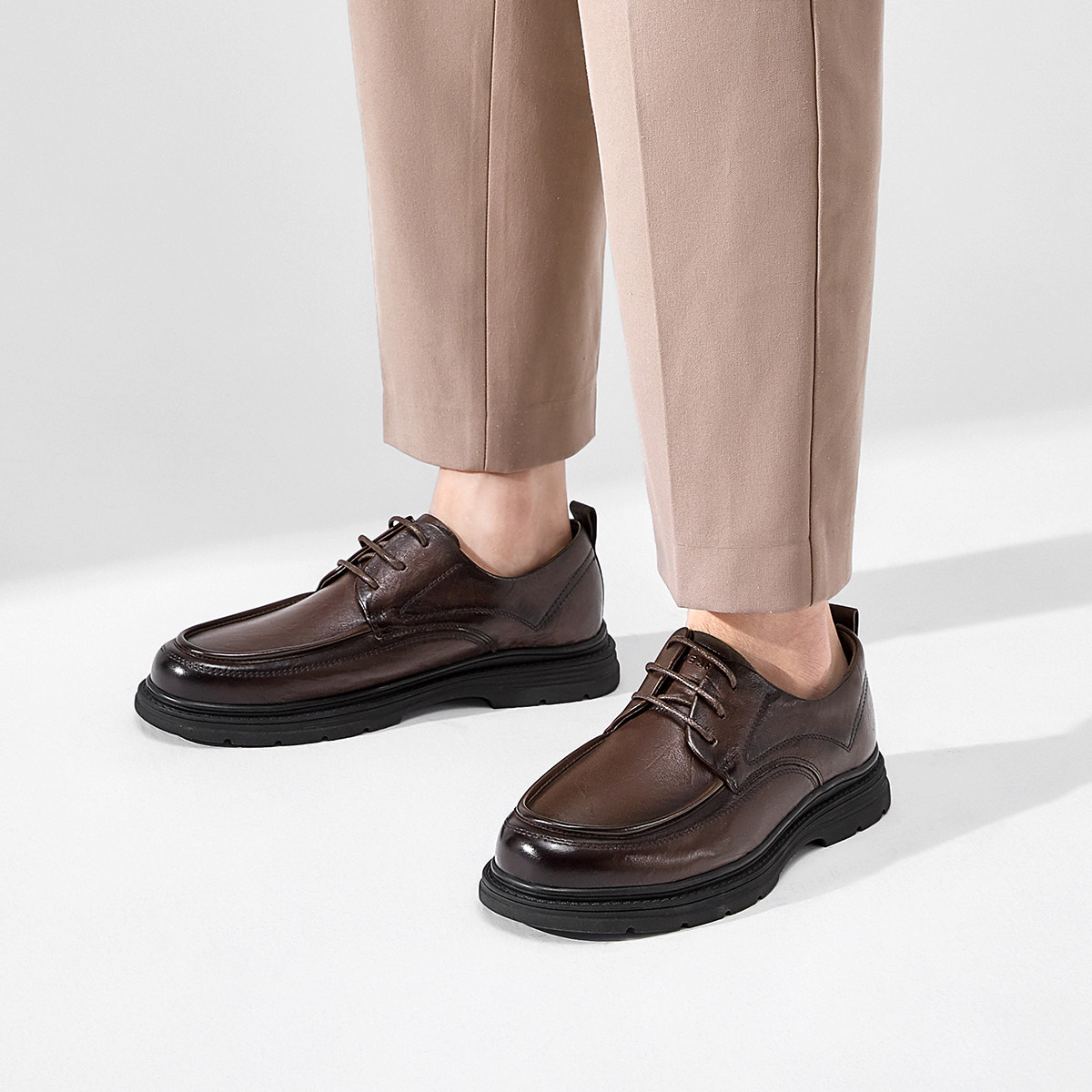 意尔康皮鞋男2026春款头层牛皮商务通勤德比鞋时尚圆头爸爸休闲鞋