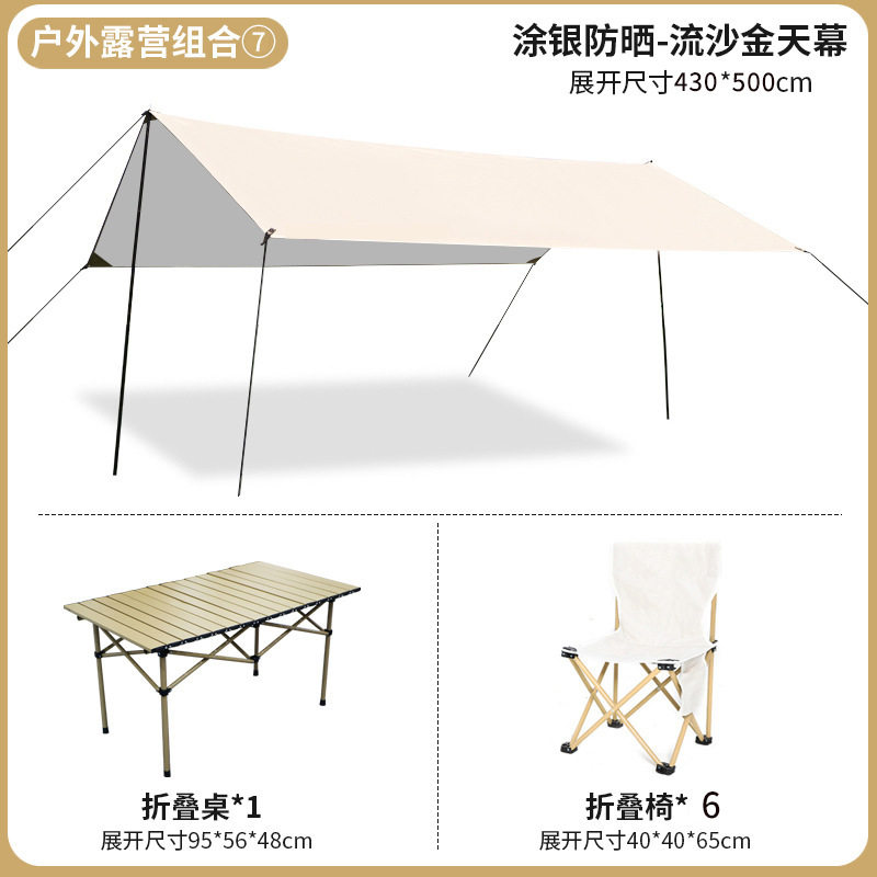 黑胶天幕帐篷f户外加厚防晒便携露营装备野餐3-4人方形涂银遮阳棚