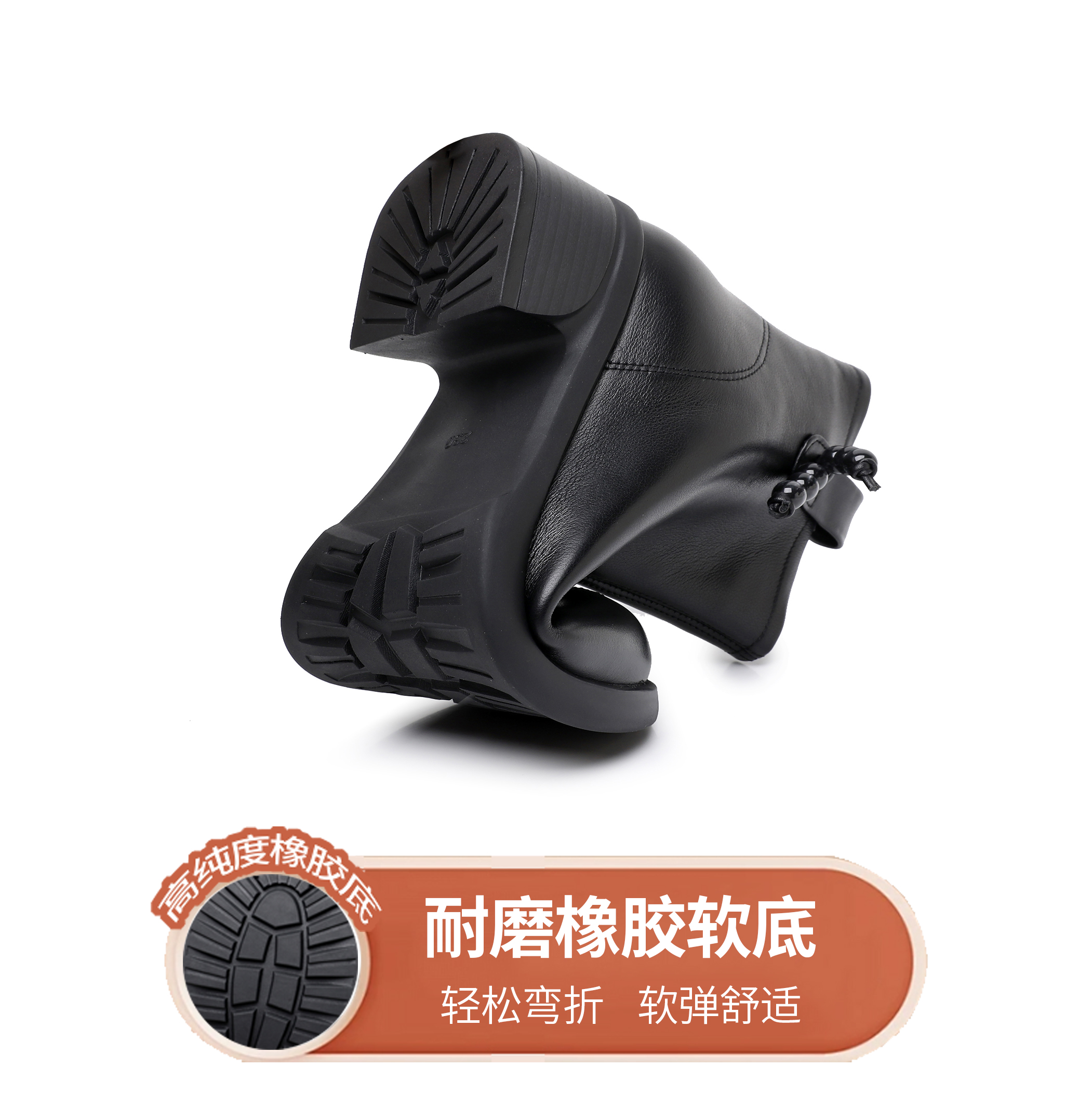 真皮软底妈妈棉鞋秋冬新款舒适不累脚大码粗跟加绒短靴中老年女靴