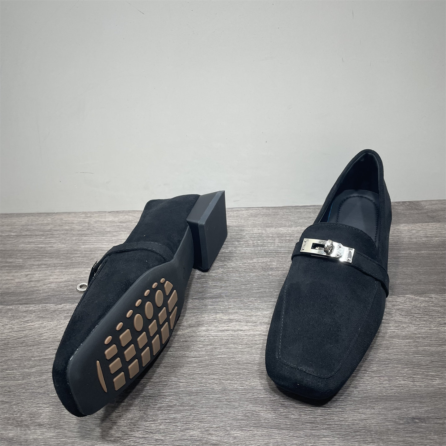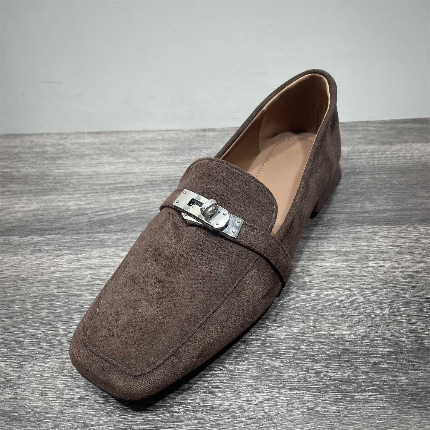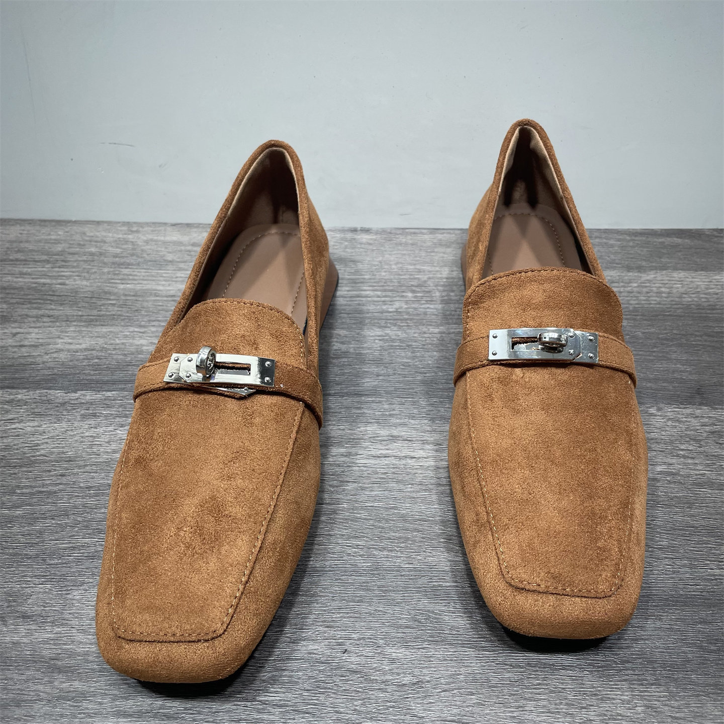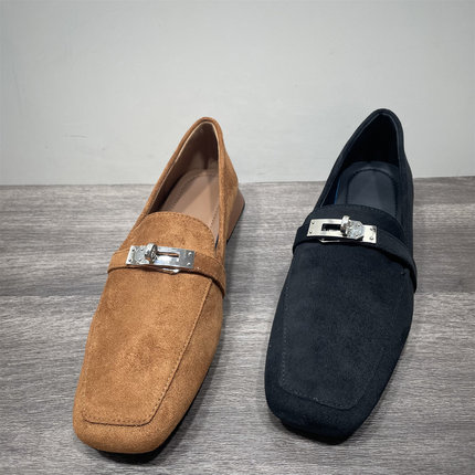 断码处理锁扣绒面平底乐福鞋女春秋新款深口低跟单鞋英伦风小皮鞋