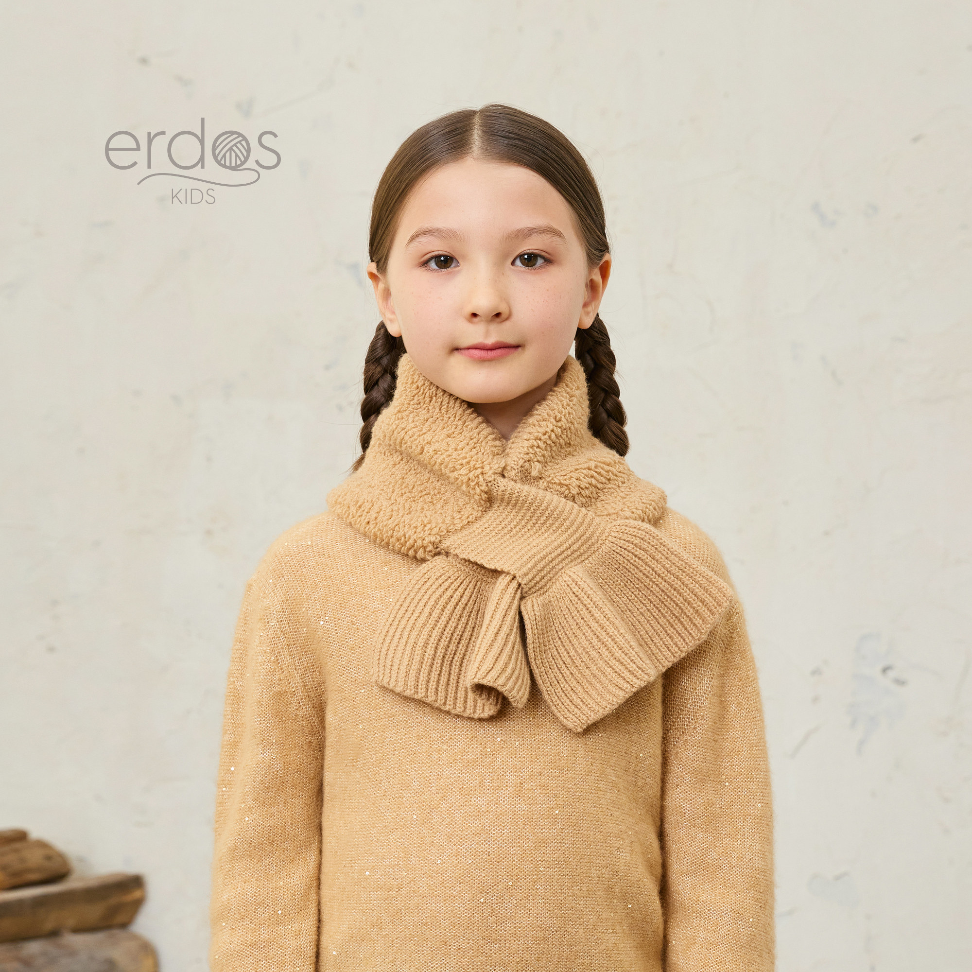 【100%山羊绒】鄂尔多斯童装25秋冬新品翻花儿童舒适柔软羊绒围巾