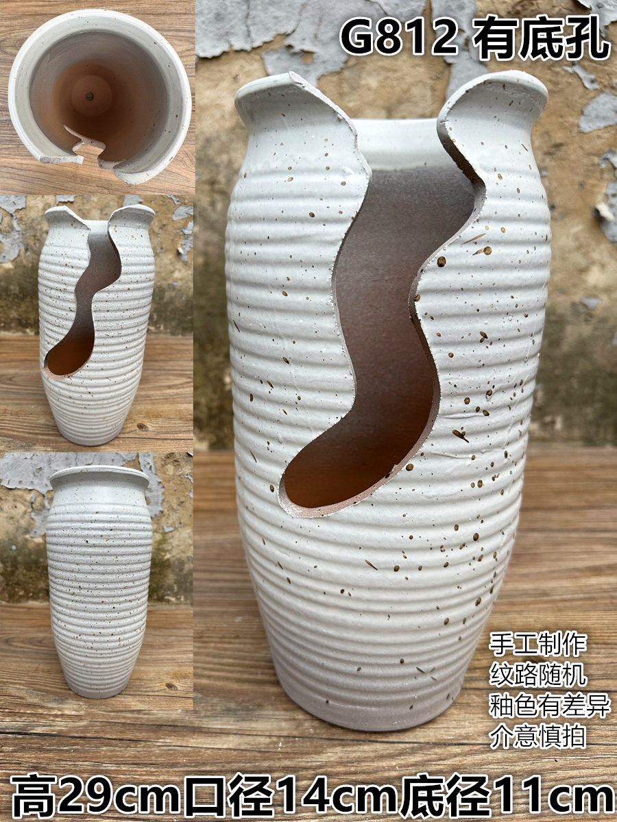 多肉法师深切口粗陶插花打孔罐子