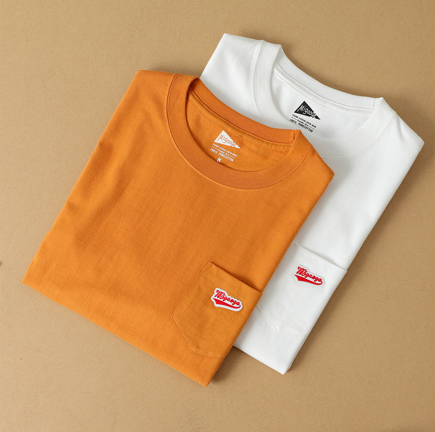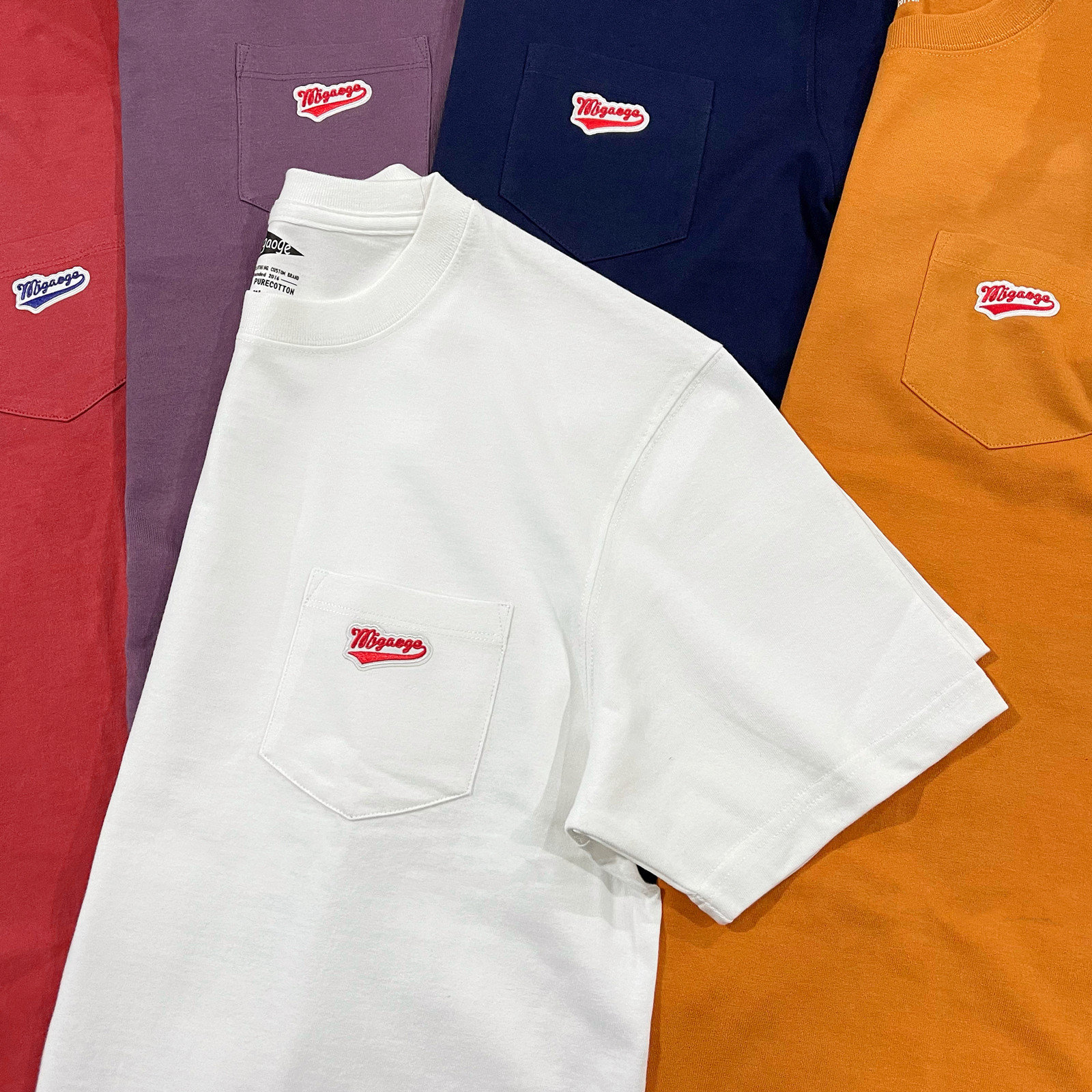 自制潮牌欧美简约刺绣青年男女口袋短袖t恤打底衫纯棉纯色打底衫