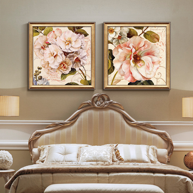 卧室床头装饰画牡丹花欧式客厅沙发背景墙画大气花卉带框挂画油画