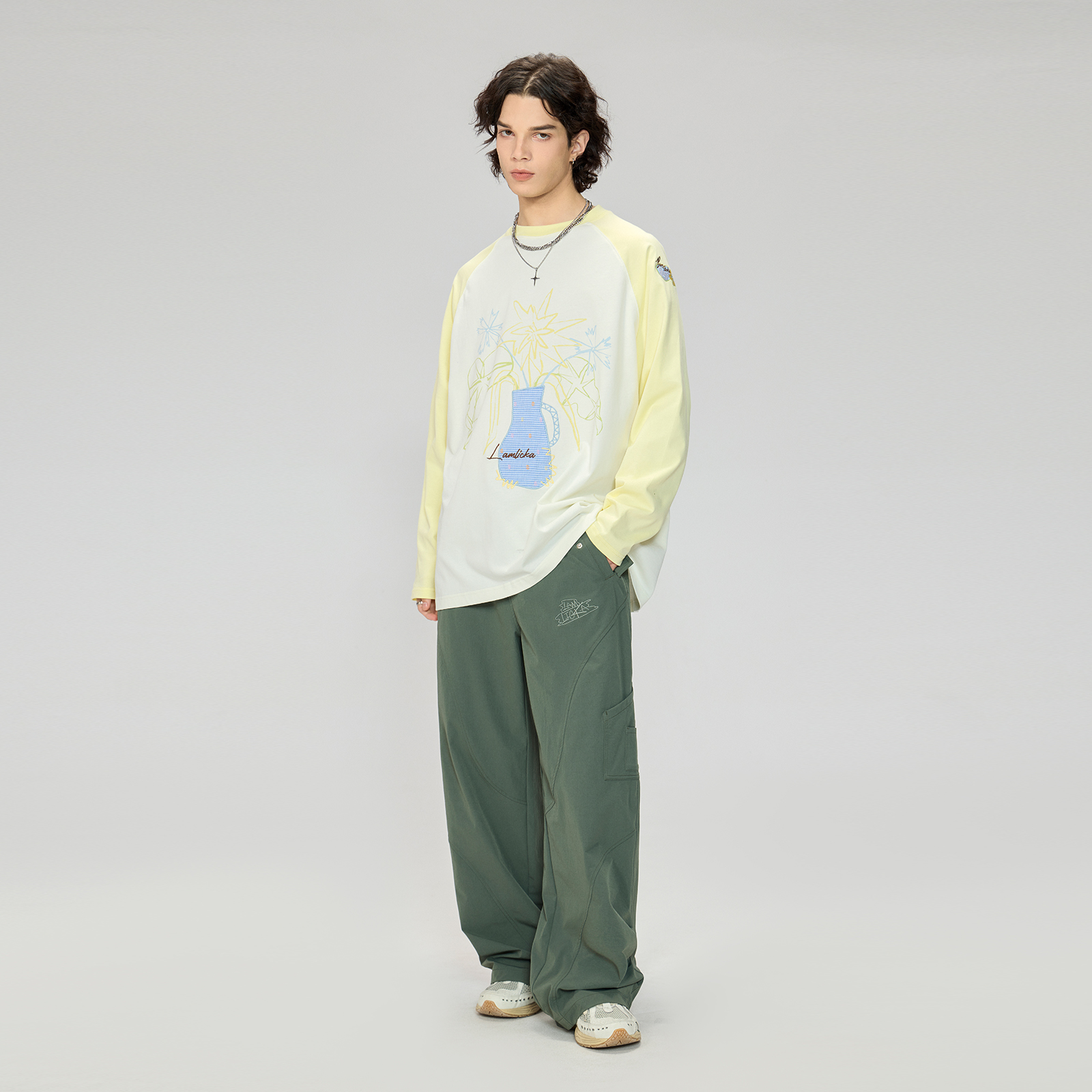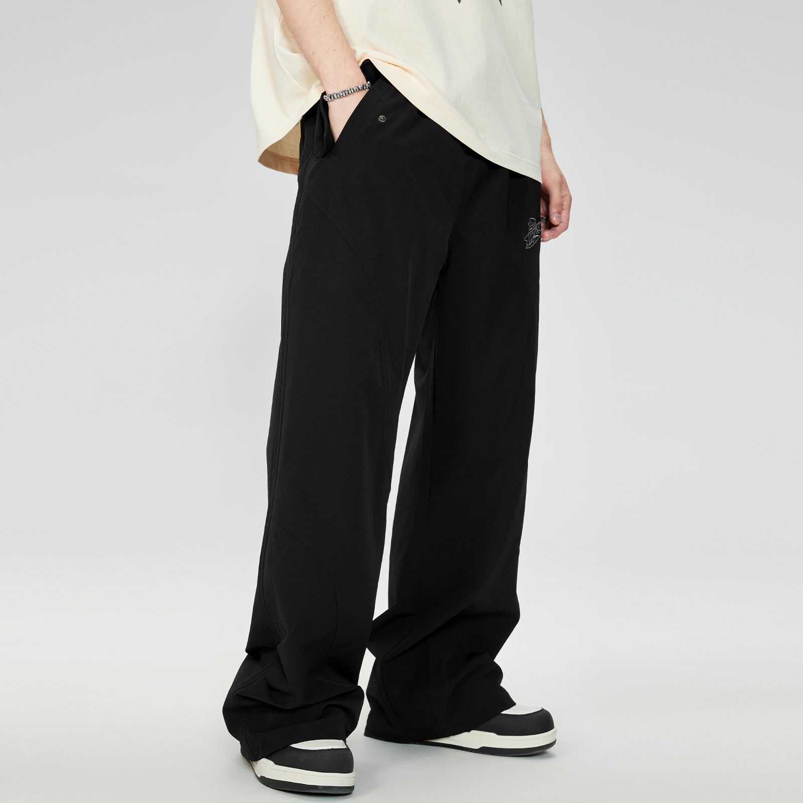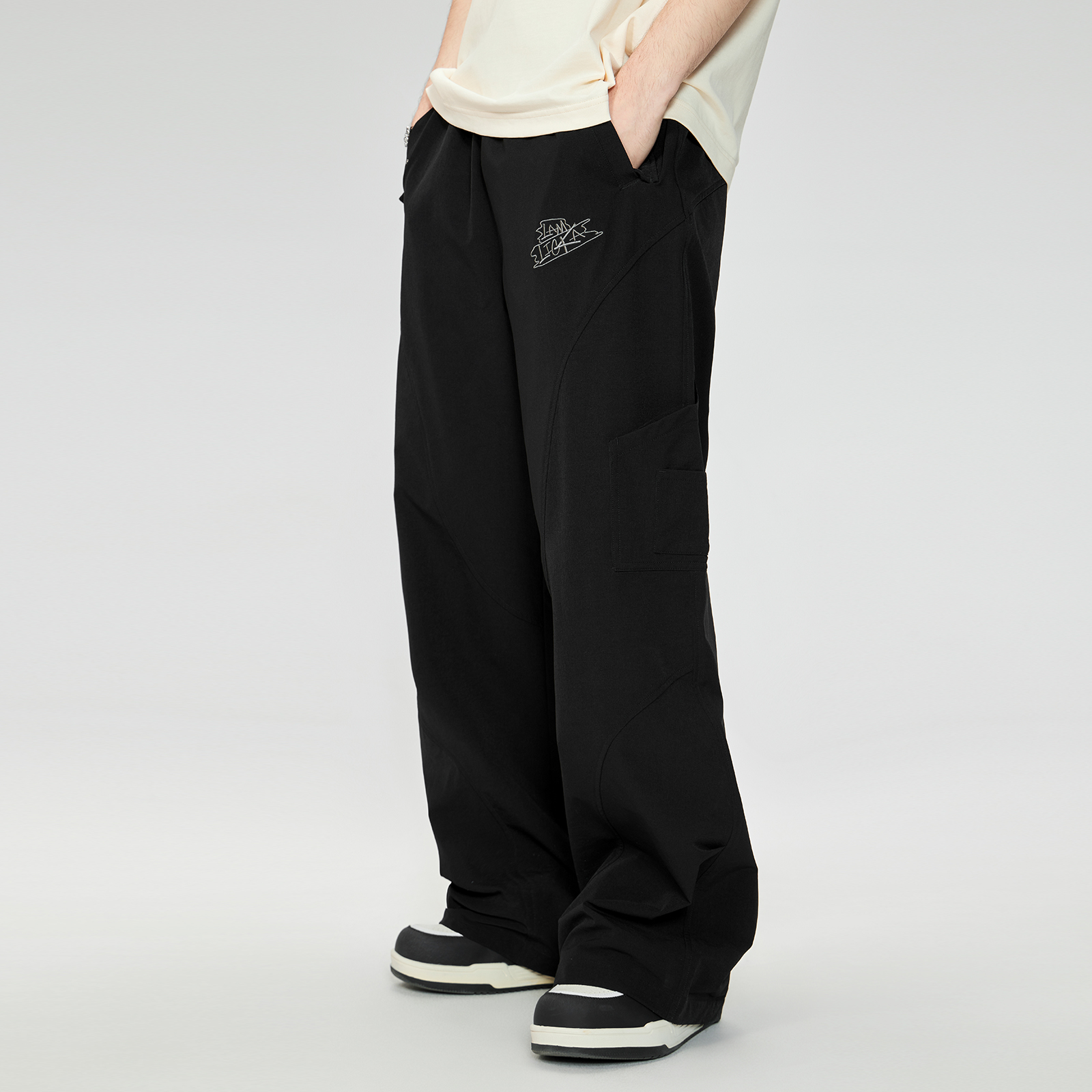 LAMLICKA简约刺绣多口袋工装休闲裤男春季新款薄垂感宽松直筒长裤