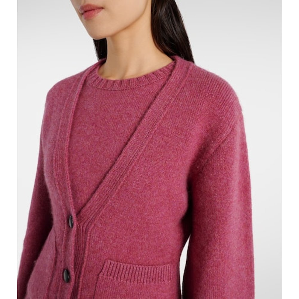 1h可退 潮奢 KHAITE 女士 鲜红色羊绒针织开衫 pink粉色 舒适时尚