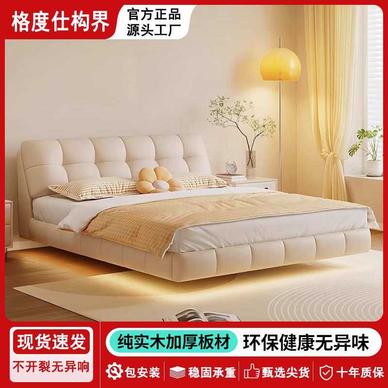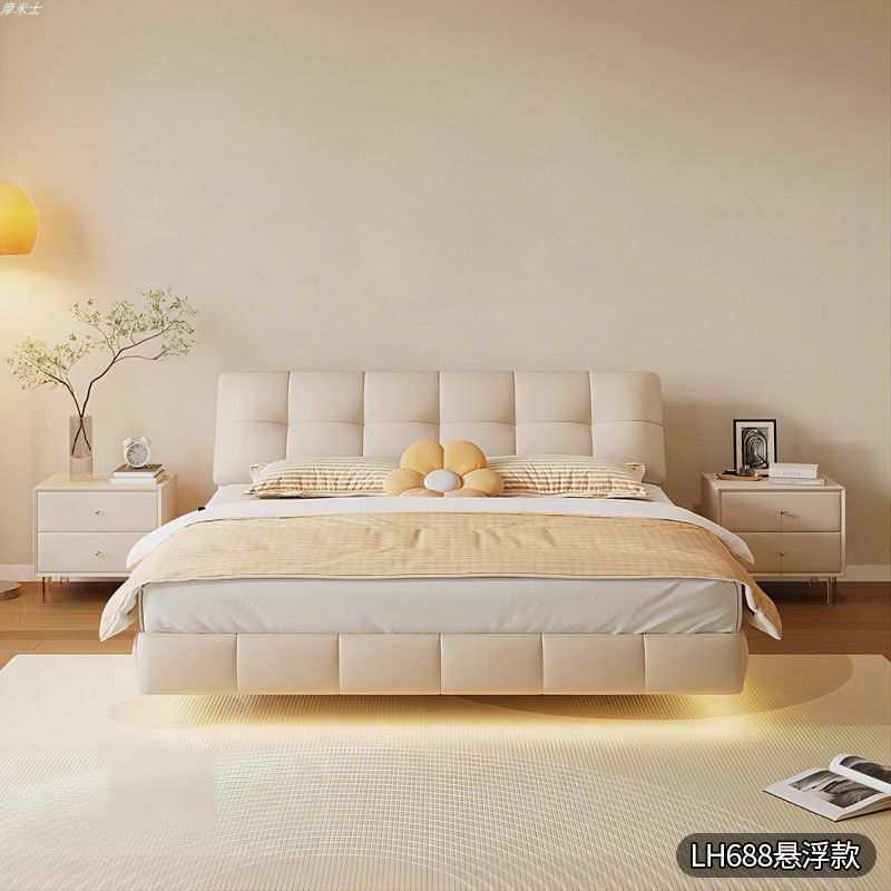 新款豪华云朵悬浮真皮卧室大床网红奶油风软包床卧室成套家具其他