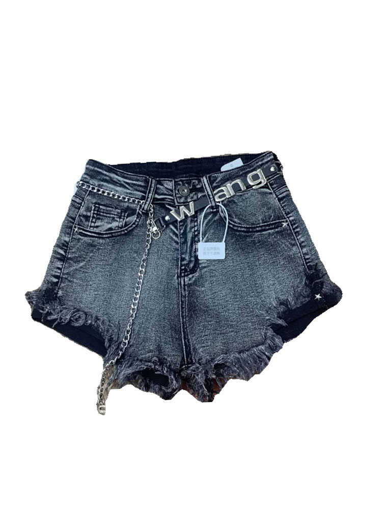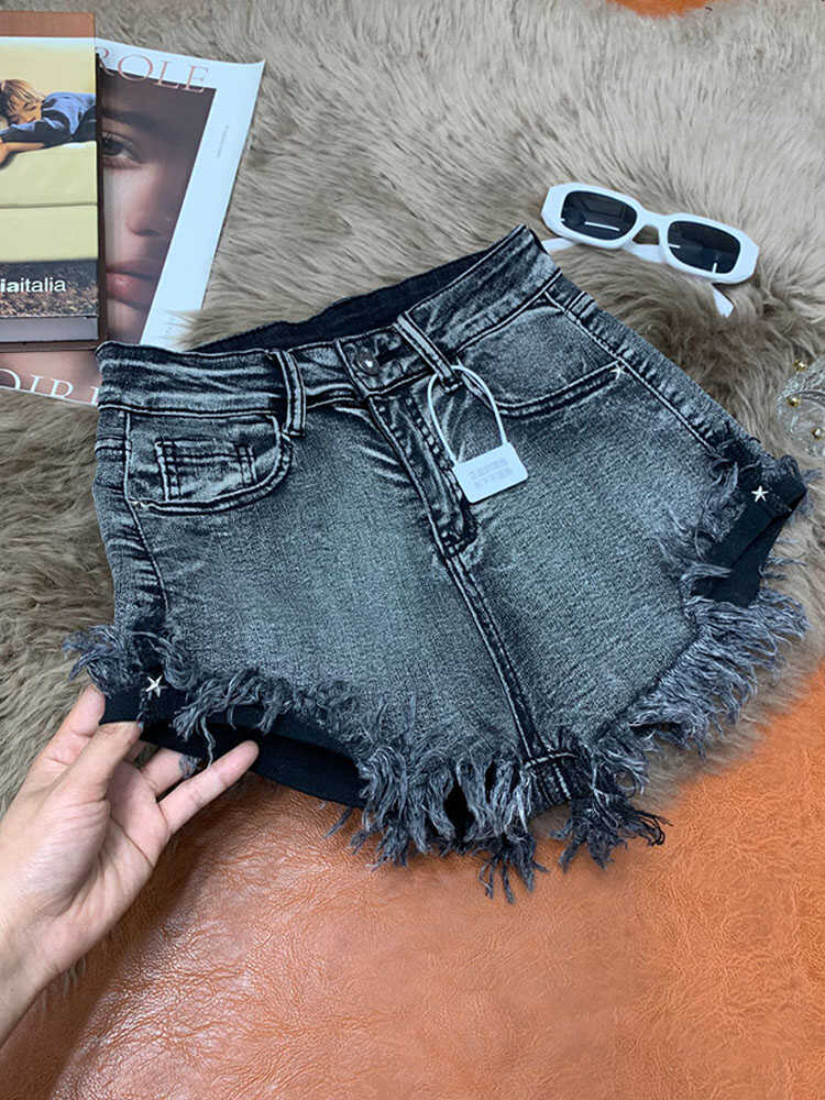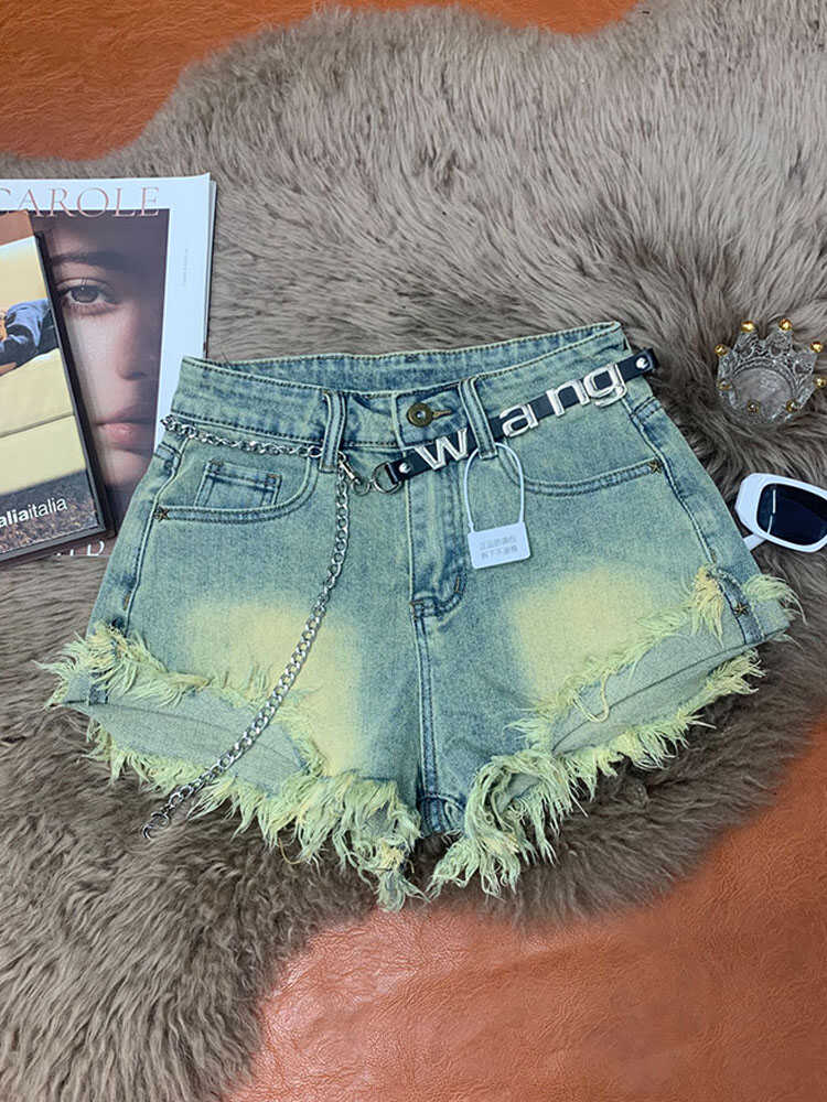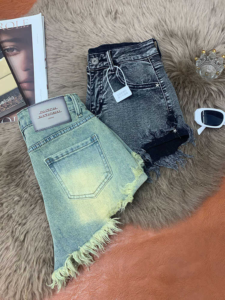美式做旧水洗牛仔短裤女2025夏季新款小个子毛边显瘦a字阔腿热裤