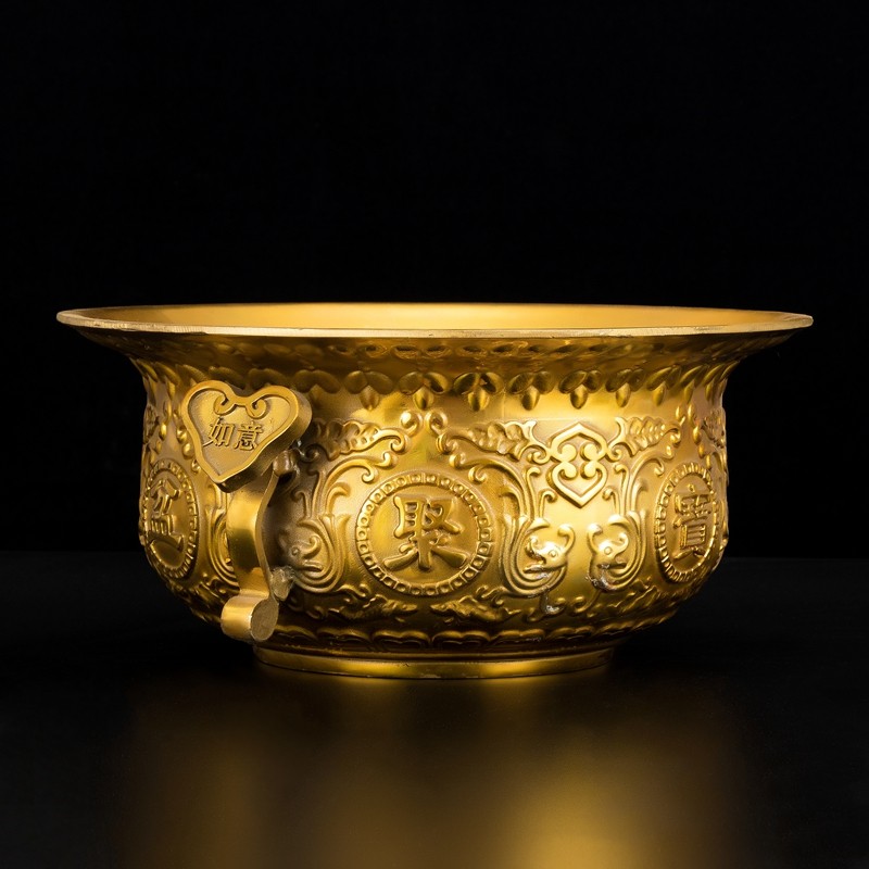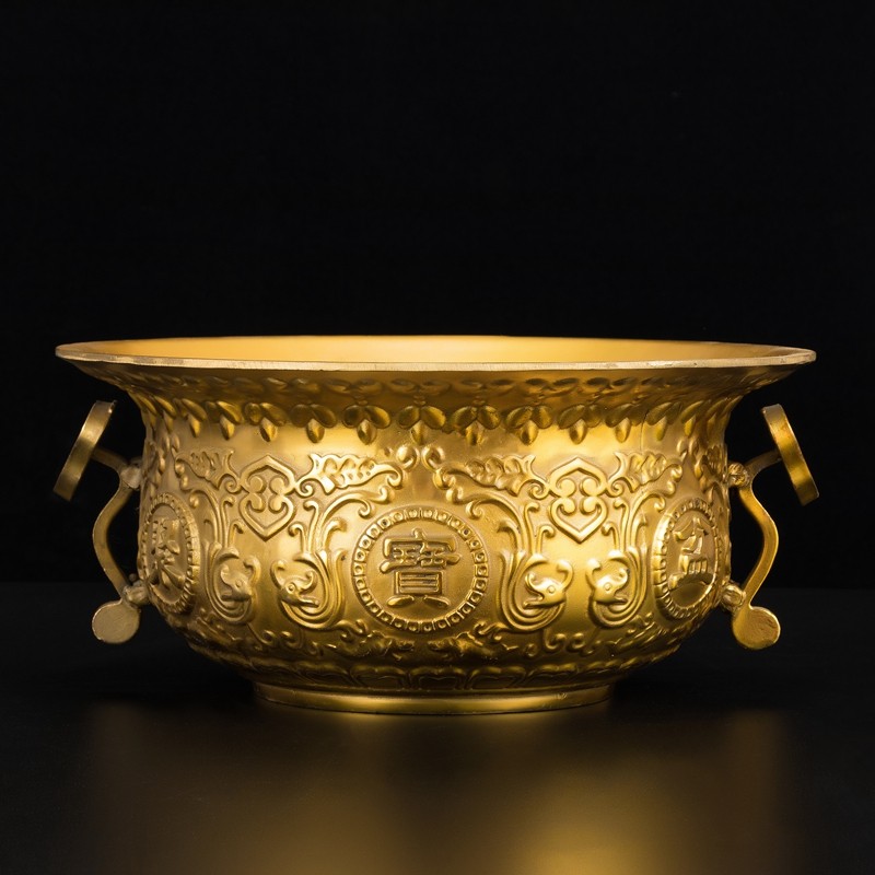 纯铜聚宝盆摆件 黄铜香炉 居家店铺柜台装饰品 开业乔迁礼品 大号