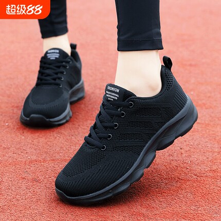 黑色女鞋百搭运动鞋女2023夏季新款轻便旅游休闲网面透气跑步鞋女
