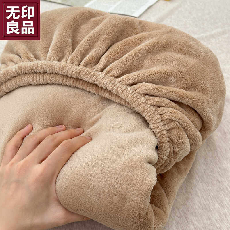 无印良品秋冬季牛奶绒床笠罩单件 加厚珊瑚绒冬天床罩0.9m1.8m2.2