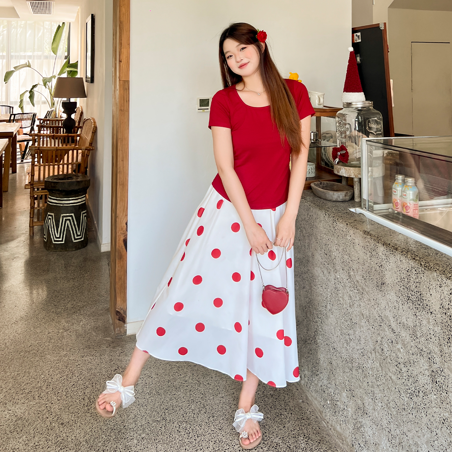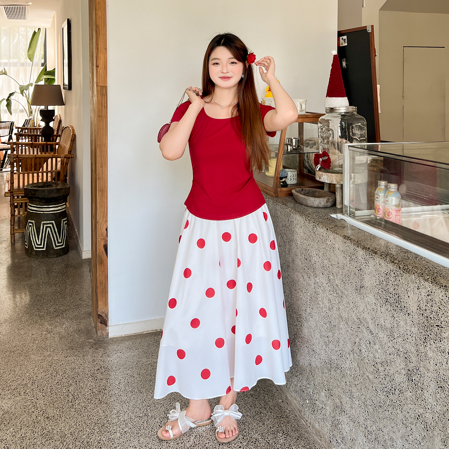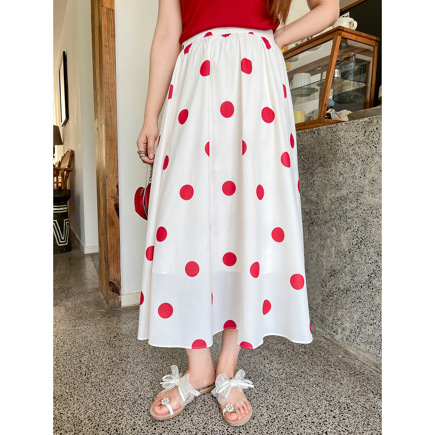 DM100大码百分百女装夏季胖mm甜美波点松紧腰伞摆半身裙波点风潮