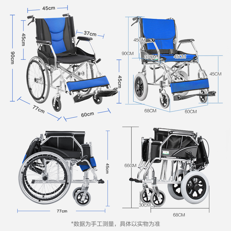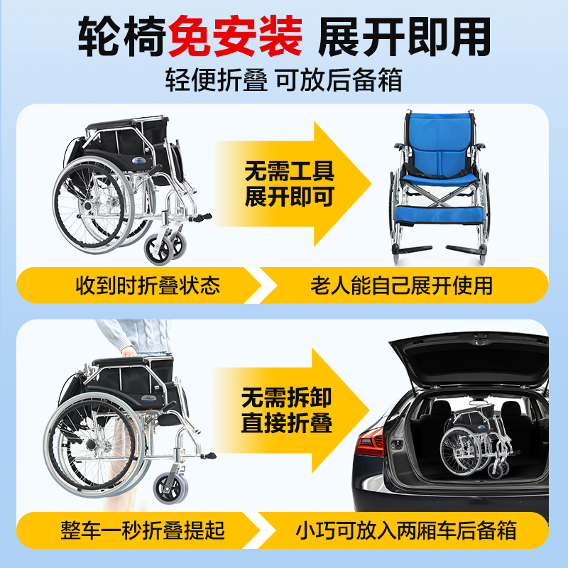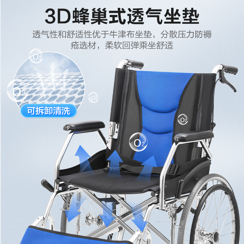 可孚医用铝合金折叠轮椅超轻便老人老年行动不便推车可推可坐代步