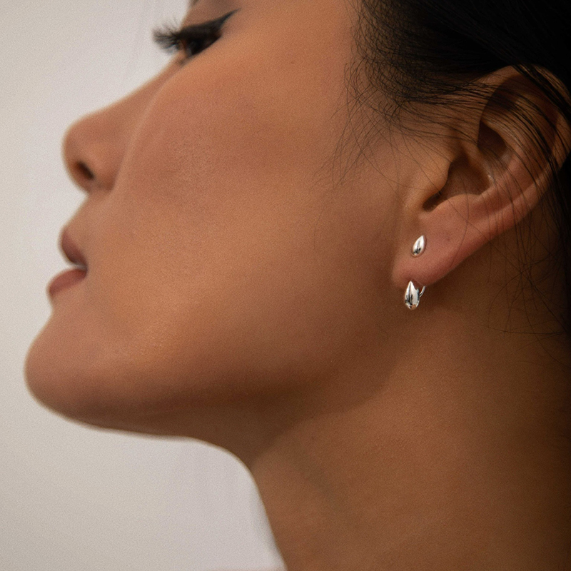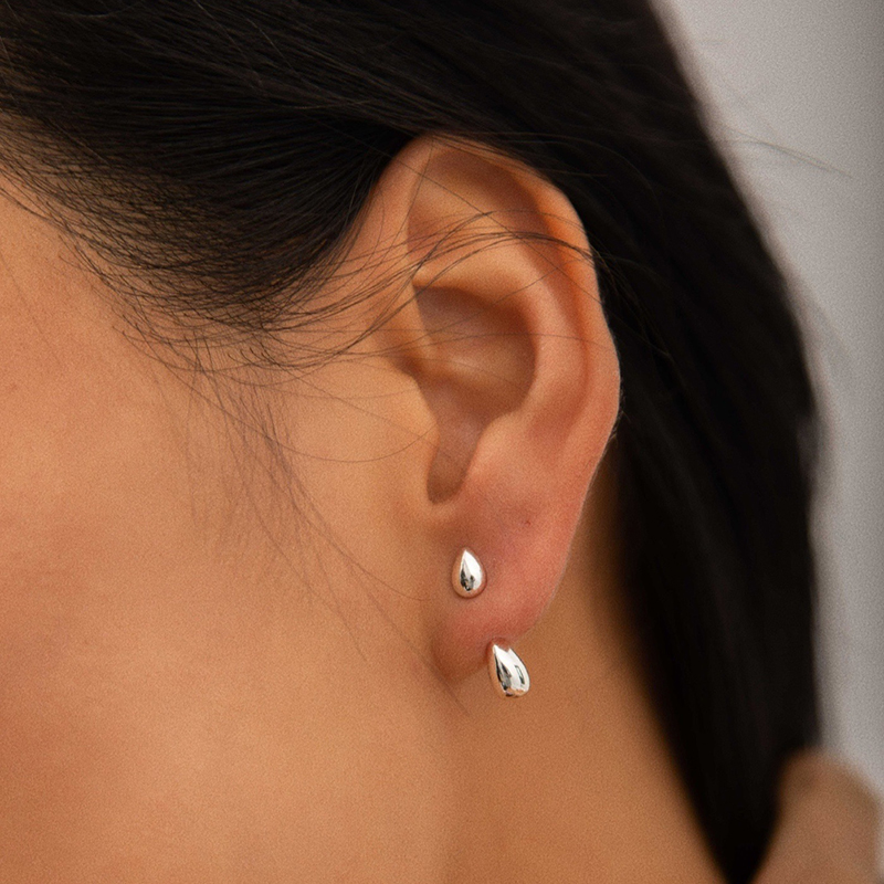 简约小巧光面水滴银蛋两戴式耳钉